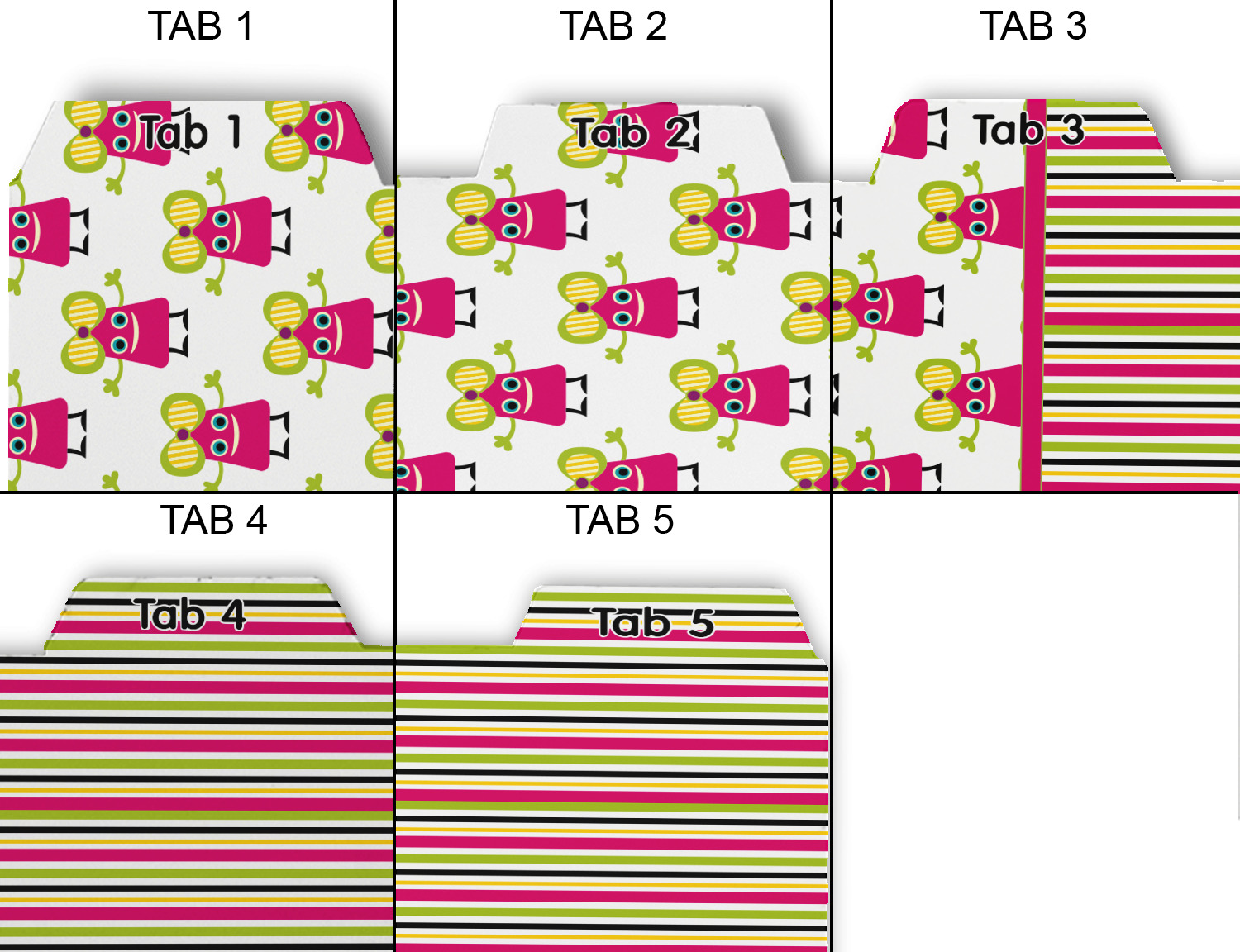 Whether you use binders at school or at work, we have designs to suit all of them. Available in 5 or 6 tab sets, you are sure to find a set to suit your needs. The back of each one is white and can be used to take notes, write vital information on, etc.