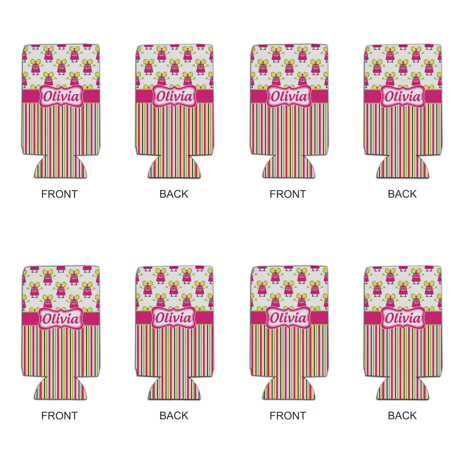 Not all little monsters have to be scary. Our one of kind girly girl monster pattern will sure to delight your little one. This little hot pink monster is decorated with a huge green, yellow, and purple bow. Set on a white background she is just begging for a hug. A classic candy striped pattern below using coordinating colors brings this design together. A wide hot pink band trimmed in lime green adds a designer touch.