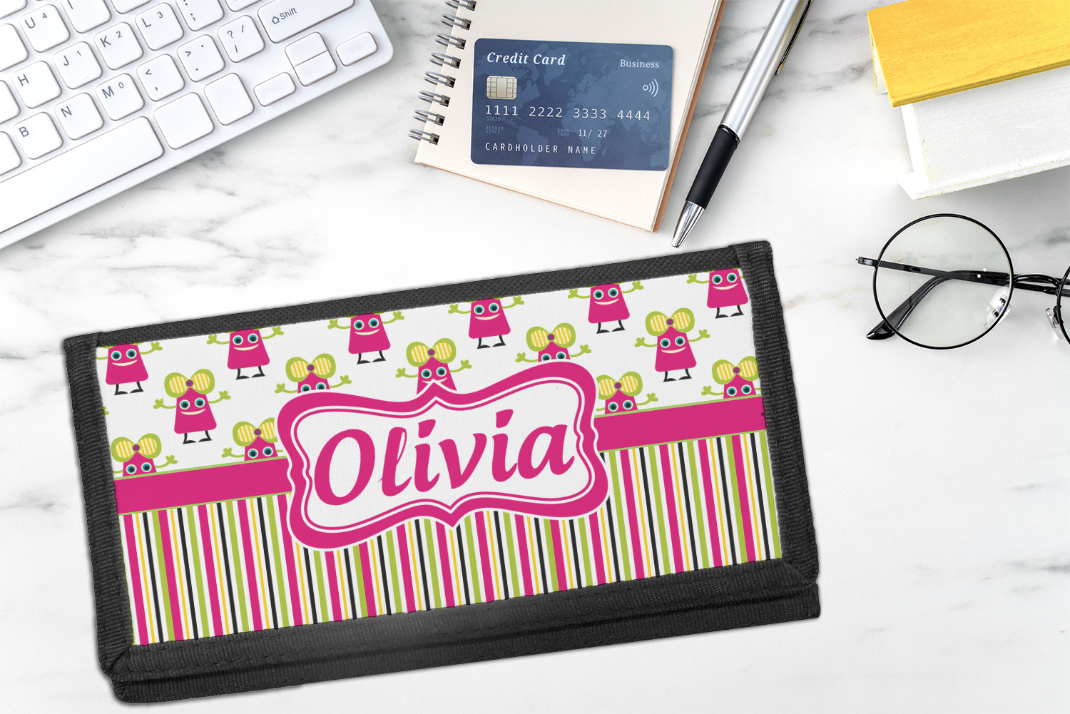 The checkbook cover is made of a durable canvas and the front flap is decorated with a vibrant design of your choosing. With 4 slots for credit cards or IDs, and 2 compartments for your checkbook register, cash, receipts, business cards, and more; this checkbook cover could easily double as a wallet.