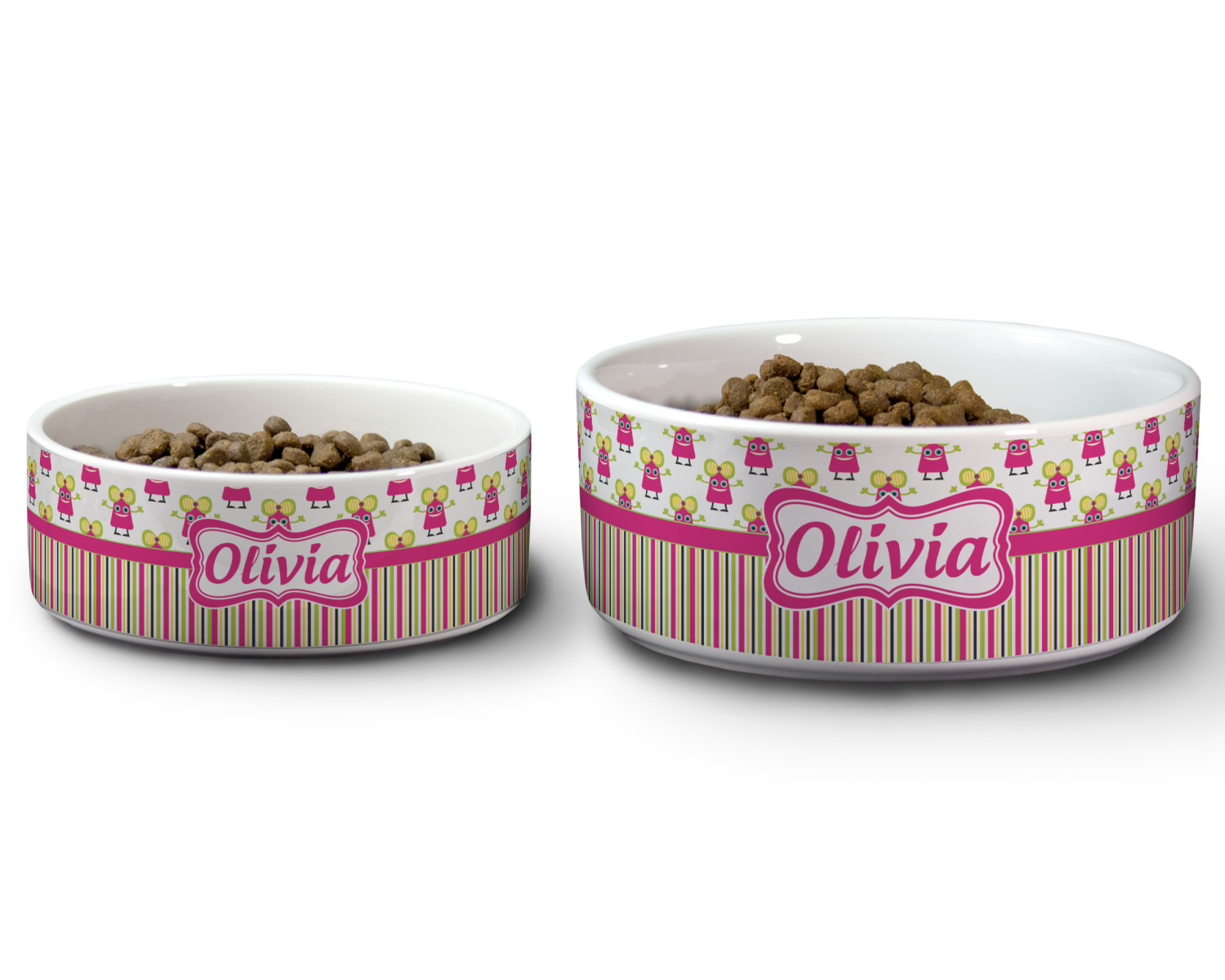 Our customized, ceramic dog bowls allow you to fashion a durable, yet expressive gift for your pet. These bowls are fashionably versatile; they suit both cats and dogs and can hold either food or water. Add your pet's name or favorite color to the design, and spruce up his/her eating area with one or two personalized pet bowls!
