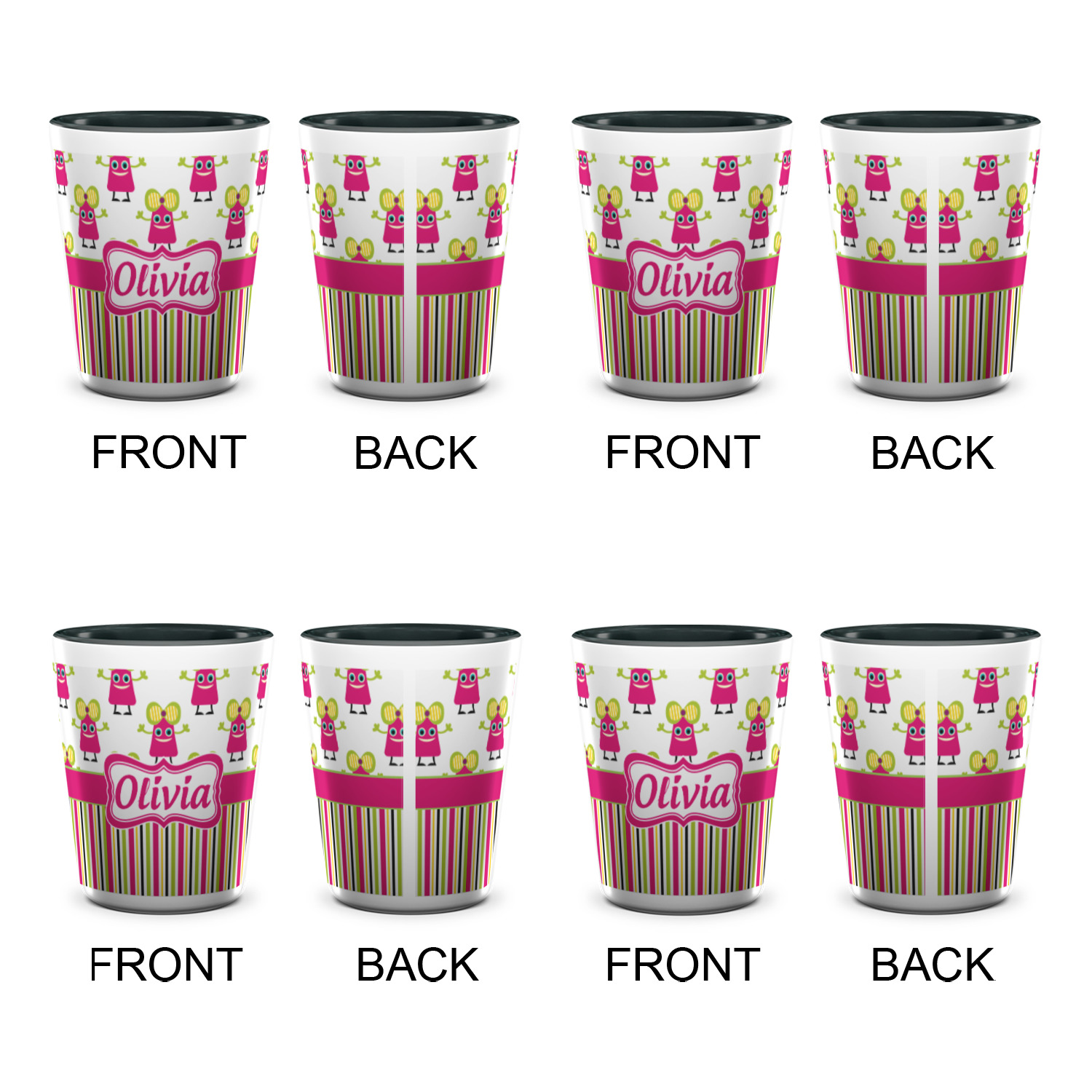 Made from ceramic these shot glasses are printed in full color with the design of your choice. These are a standard 1.5oz size and stand 2.25" tall. Available in a full white ceramic or a two-tone with a black color inside the shot glass. Buy a single or a set of 4, all of which can be designed separately to get you just what you want and need.