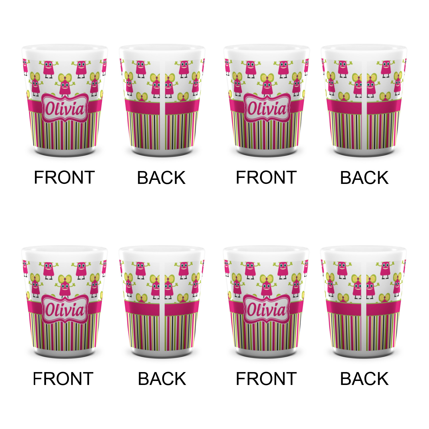 Made from ceramic these shot glasses are printed in full color with the design of your choice. These are a standard 1.5oz size and stand 2.25" tall. Available in a full white ceramic or a two-tone with a black color inside the shot glass. Buy a single or a set of 4, all of which can be designed separately to get you just what you want and need.
