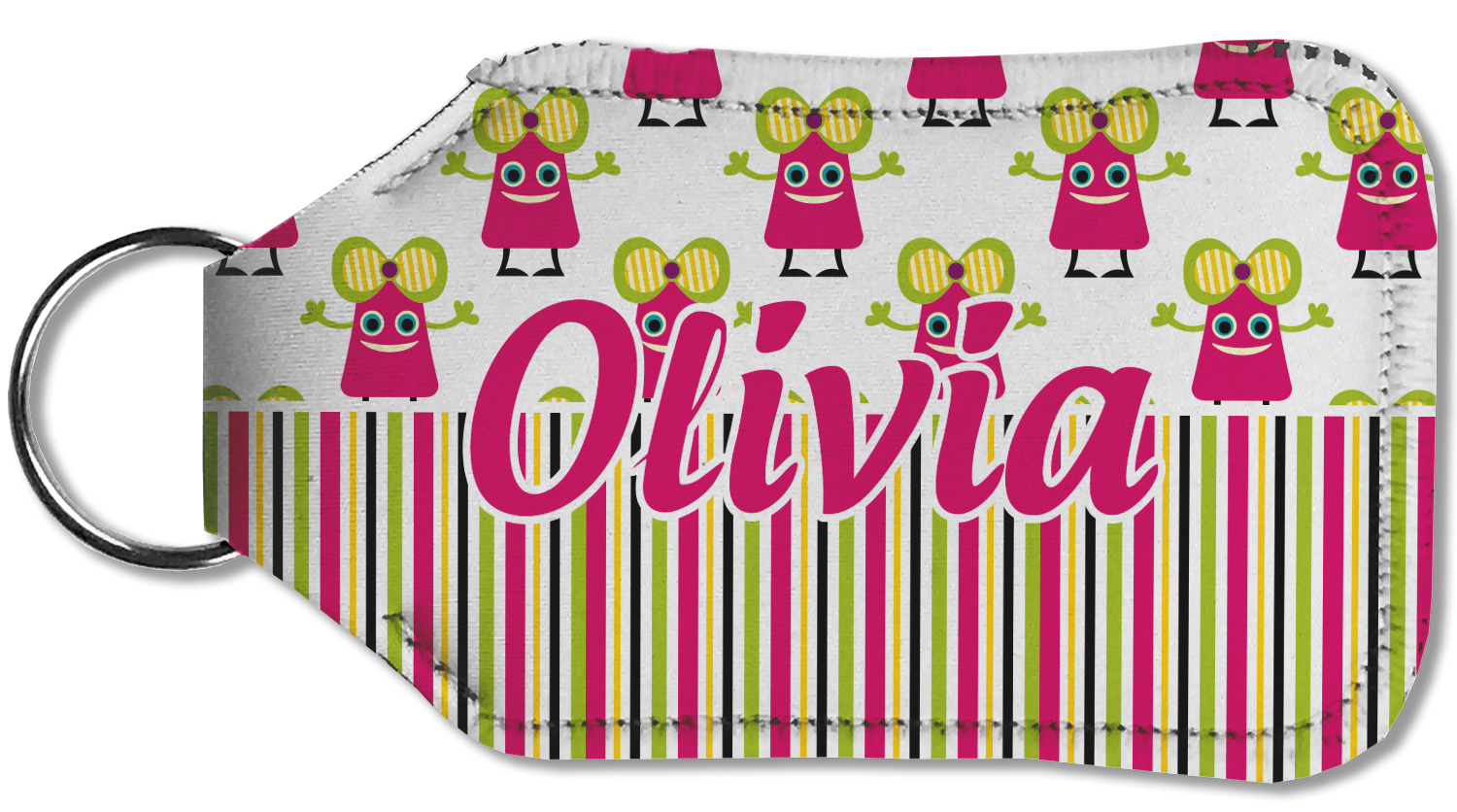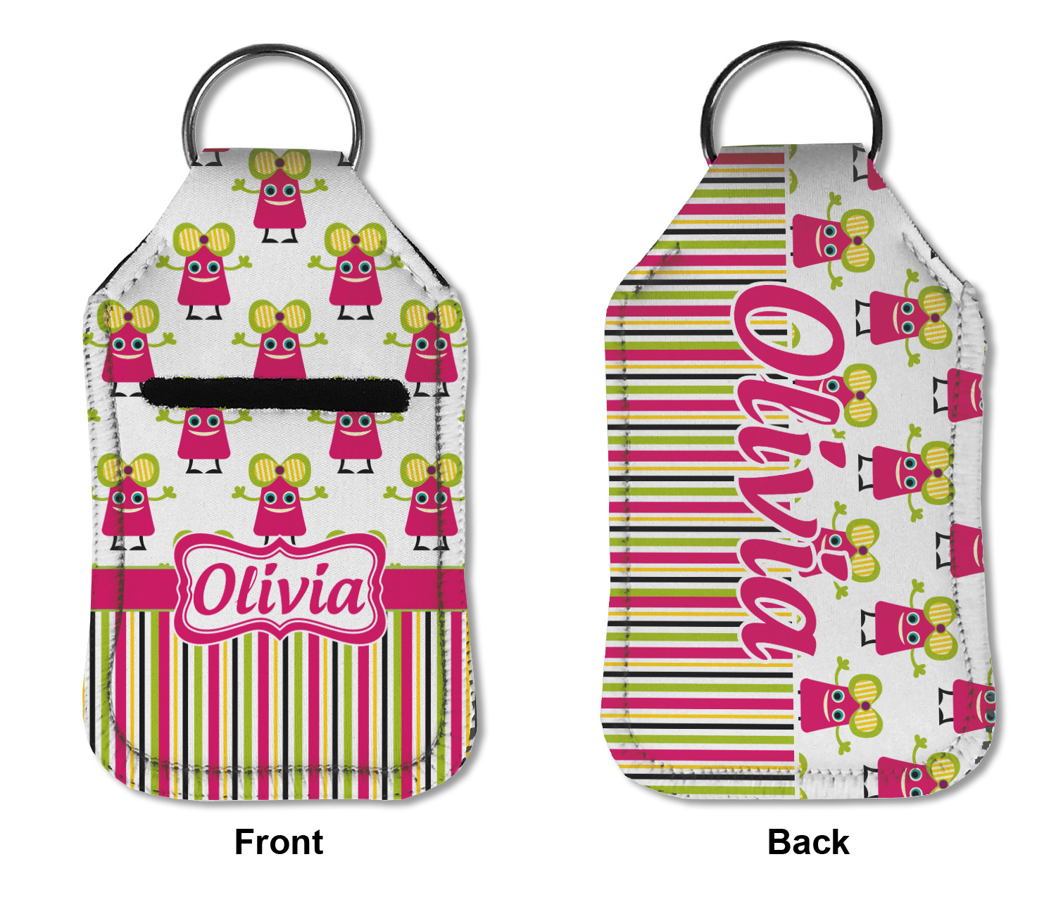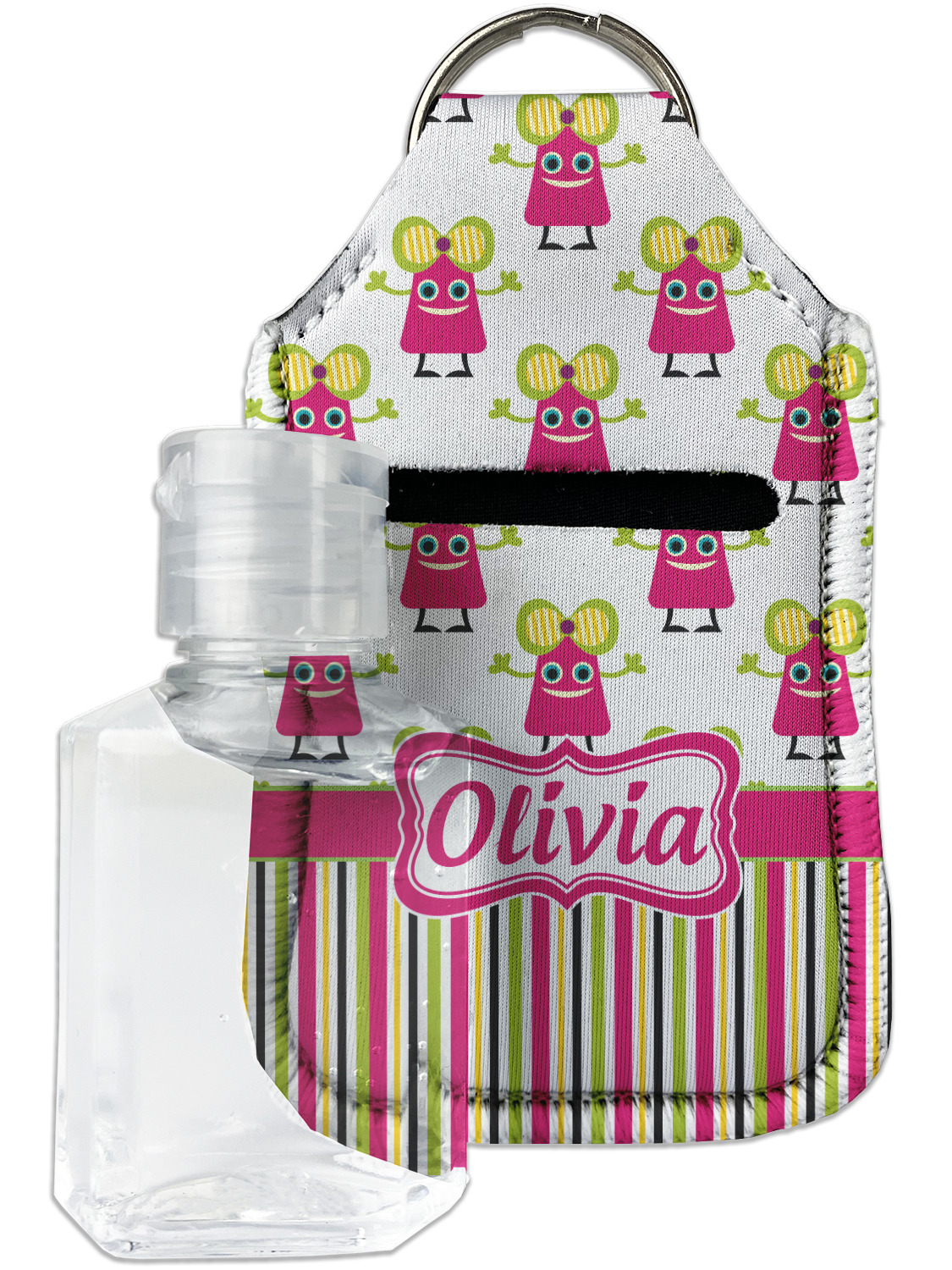 Each hand sanitizer holder comes with its own empty travel-sized, refillable hand sanitizer sure to fit snug in your customized sanitizer case! Our hand sanitizer cases are a durable, yet soft neoprene material sure to last any daily activities or travel agenda. Customize and personalize a hand sanitizer bottle holder with one of our two sizes - small (4.25" x 2.25") or large (5.5" x 2.5"). Each travel sanitizer holder comes with a keyring for attachment on bags, keys, or more!