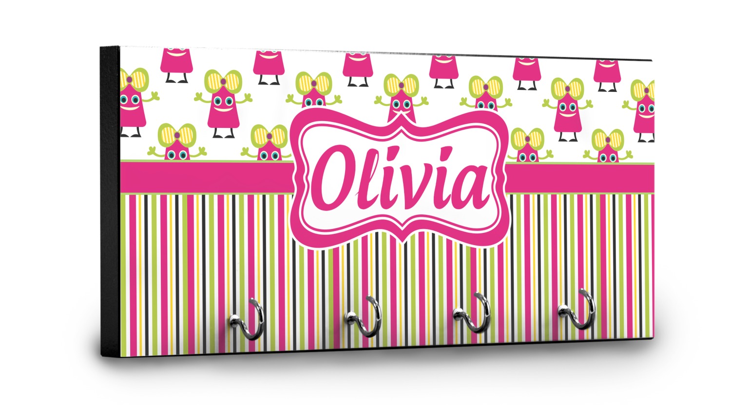 This 11" x 5" key hanger is made of sturdy wood and has four metal hooks lining the bottom. This is the perfect size for a family with several drivers. Not only can you hang keys on it though, but pet leashes and other small items. The board is black on the sides and back and is printed with the design of your choice on the front.