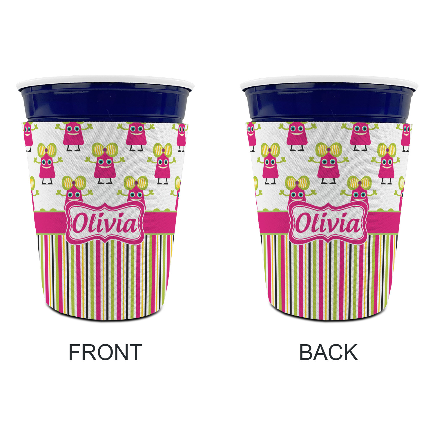 Made from neoprene with a polyester outer fabric and sewn seams, these premium quality party cup sleeves are very durable and will hold up to heavy use. They are available in 2 styles - with a bottom or just a sleeve to go around the outside of the tapered cup. The sleeve covers are about 4" tall and cover about 90% of the classic 16 oz. Solo cup.