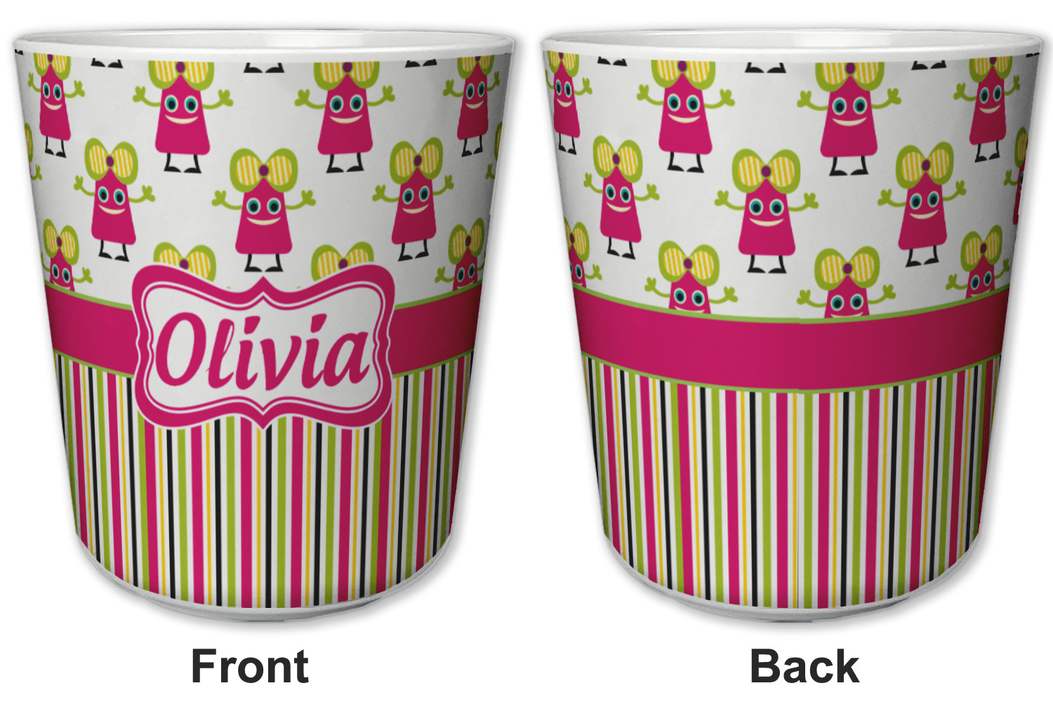 Made from a durable plastic, these tumbler cups are strong enough to withstand daily use and are perfect for young children. Each of these personalized plastic cups holds 6 ounces and measure at approximately 3" x 3" x 3.25". Place them in the bathroom as a rinsing cup, or give them to your kids during mealtimes. These 6 oz. plastic cups are BPA free, microwave and dishwasher safe, for your convenience. Your personalized design is displayed across the entire outside of this cup, while the inside is white in color to make your customization really stand out.