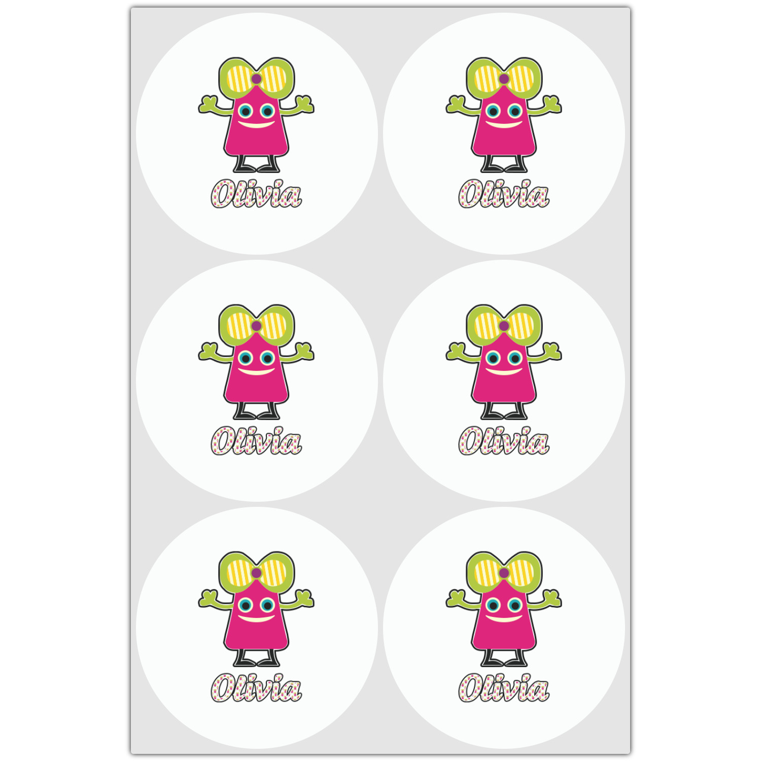 Not all little monsters have to be scary. Our one of kind girly girl monster pattern will sure to delight your little one. This little hot pink monster is decorated with a huge green, yellow, and purple bow. Set on a white background she is just begging for a hug. A classic candy striped pattern below using coordinating colors brings this design together. A wide hot pink band trimmed in lime green adds a designer touch.