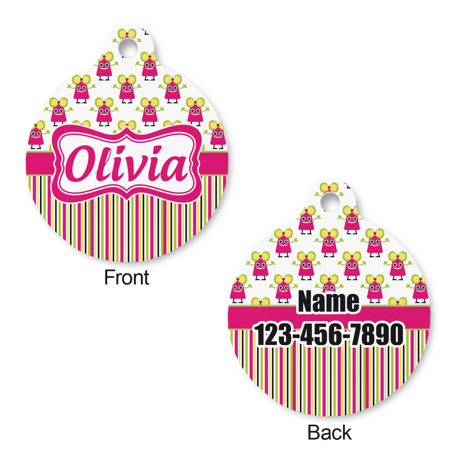 Go ahead; skip the monotony of plain pet ID tags with your very own, customized & personalized, round pet tag! This pet ID tag, fitting for both cats and dogs, will catch the eye of any onlooker (humans, canines, and felines, alike!) and accentuate your pet's individual personality.