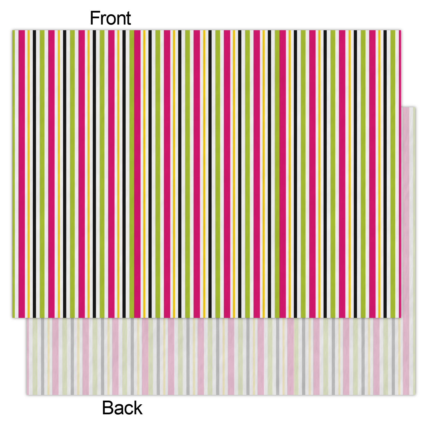 Not all little monsters have to be scary. Our one of kind girly girl monster pattern will sure to delight your little one. This little hot pink monster is decorated with a huge green, yellow, and purple bow. Set on a white background she is just begging for a hug. A classic candy striped pattern below using coordinating colors brings this design together. A wide hot pink band trimmed in lime green adds a designer touch.