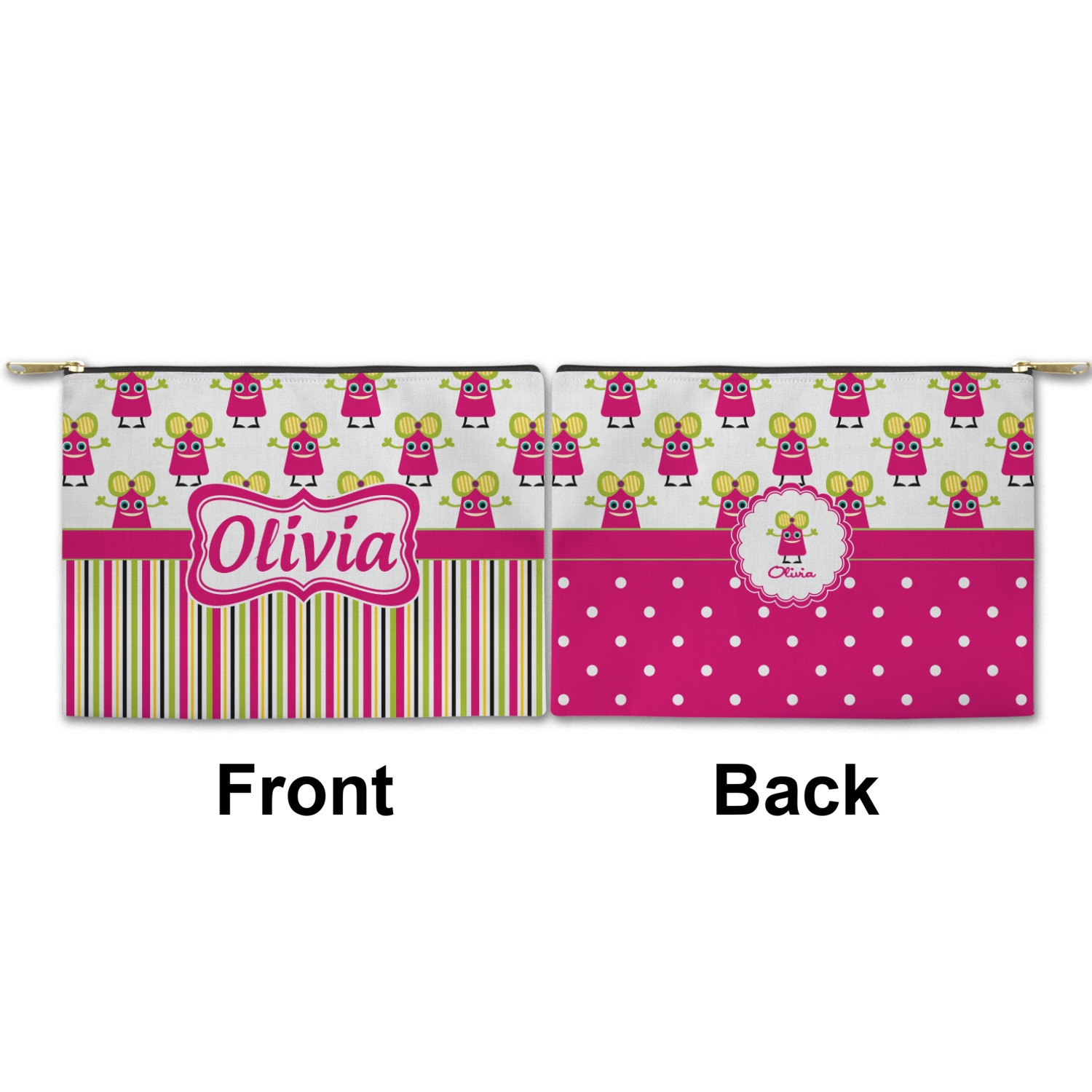 You can design both the front and the back of the pouch - same design, two complementary designs or two totally different designs - the choice is yours! We offer many different personalization styles i.e. name, name & initial, monograms - so the choice to personalize is also yours.