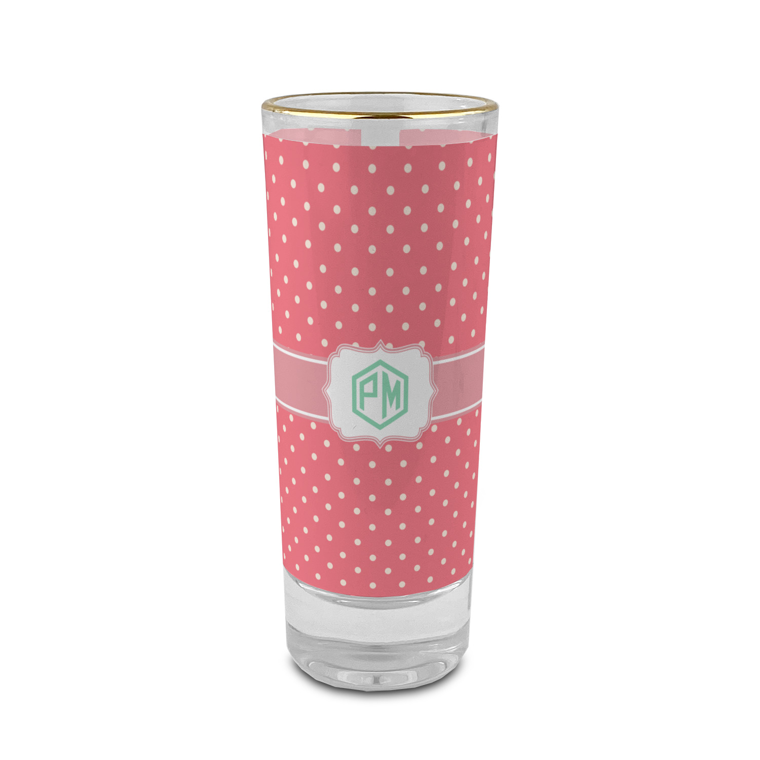 These glass shooter glasses are printed in full color with the design of your choice. These are a tall shooter 2 oz size and stand 4" tall. The print is a full wrap design to boldly display your personalization.