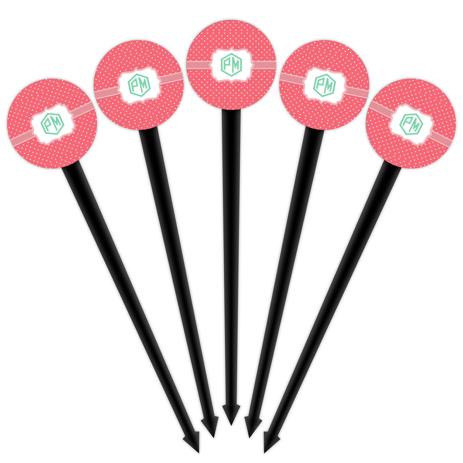 Our plastic cocktail picks have a round disc on top that is printed in full color with your event theme, colors, your logo, your photo, names, initials, monograms etc.