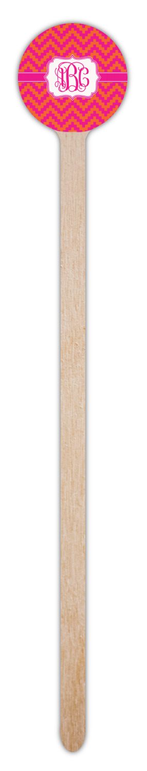 The pixelated chevron stripe pattern alternates between the hot pink and orange. The design has a classic ribbon in hot pink with white stripes. The decorative rectangular label is also in hot pink and white. The personalization is the gorgeous interlocking monogram in hot pink to pull the entire design together.