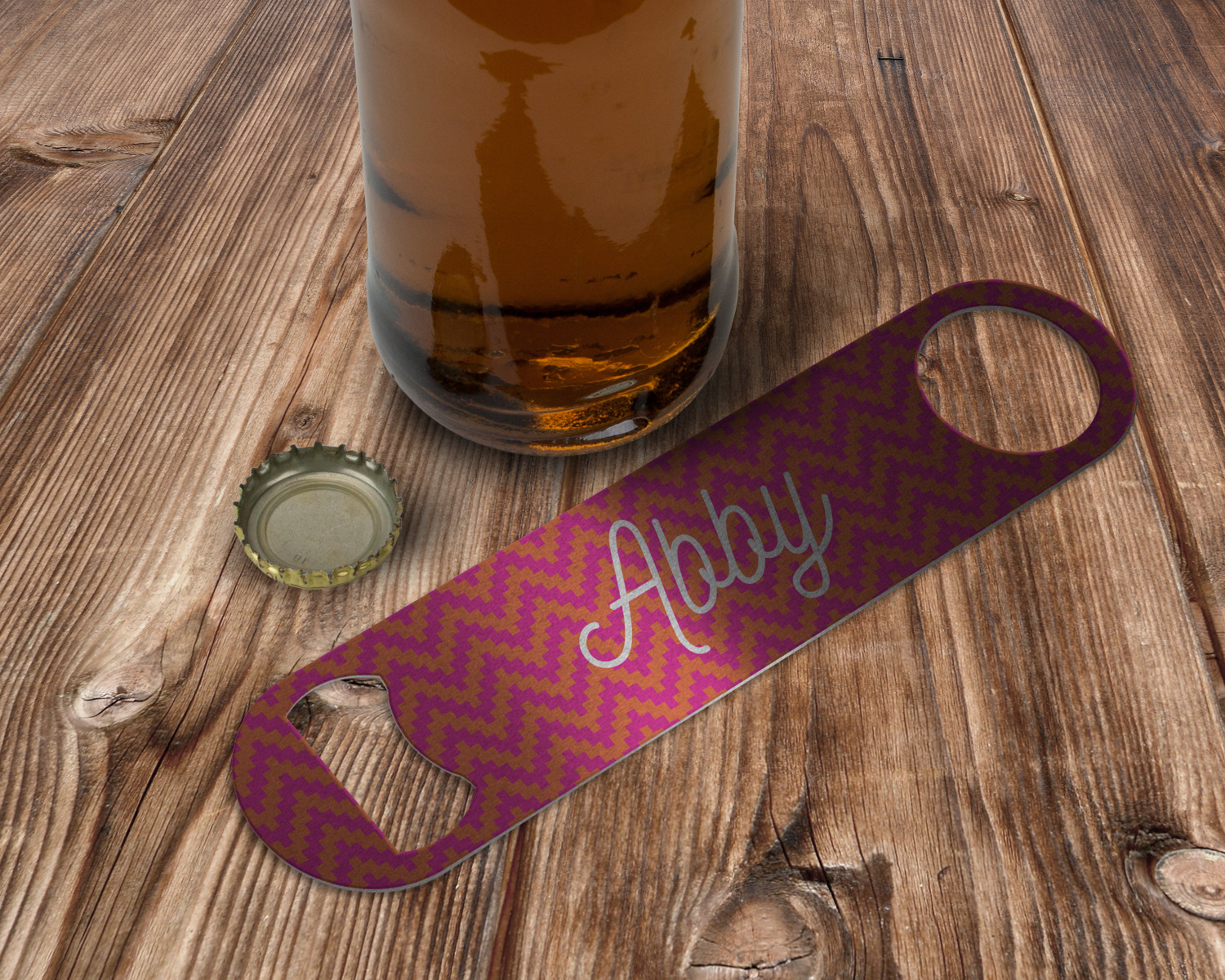 Stop struggling with the caps or your bottled beverages by purchasing one of our personalized bottle openers! These wrench-like custom bar blades are built to last. Customize one for your home's bar, or as a practical gift for a loved one!