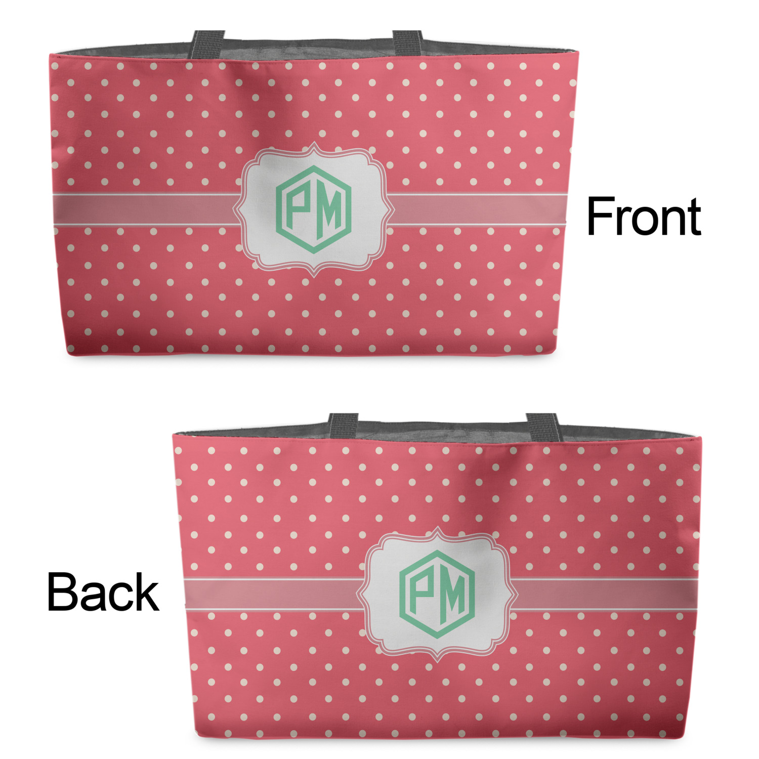 These beach totes are handmade here in the USA. Fabric is printed with your design. The tote is then sewn from the fabric pieces, lining and handles added.