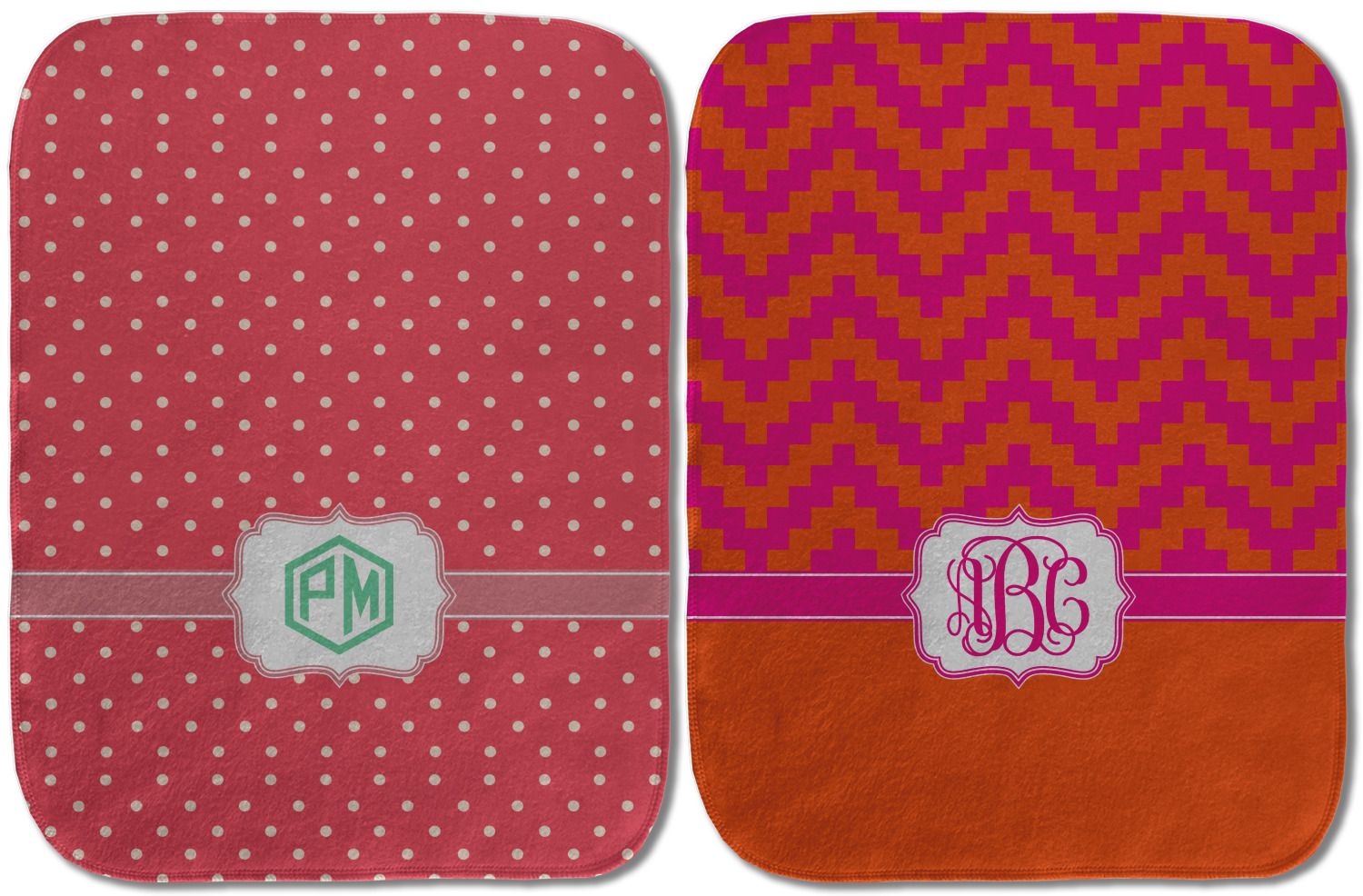 Choose your baby burp cloth from our two styles - Fleece (rectangular) or Microfiber Velour (peanut shape). The lightweight and absorbent design makes each burp cloth multipurpose; use them as a burp pad, a lap pad, a changing table, or a spare cloth to clean up any baby mess. Your customization is displayed across the front with baby-safe ink to ensure extra comfort with a white backing.