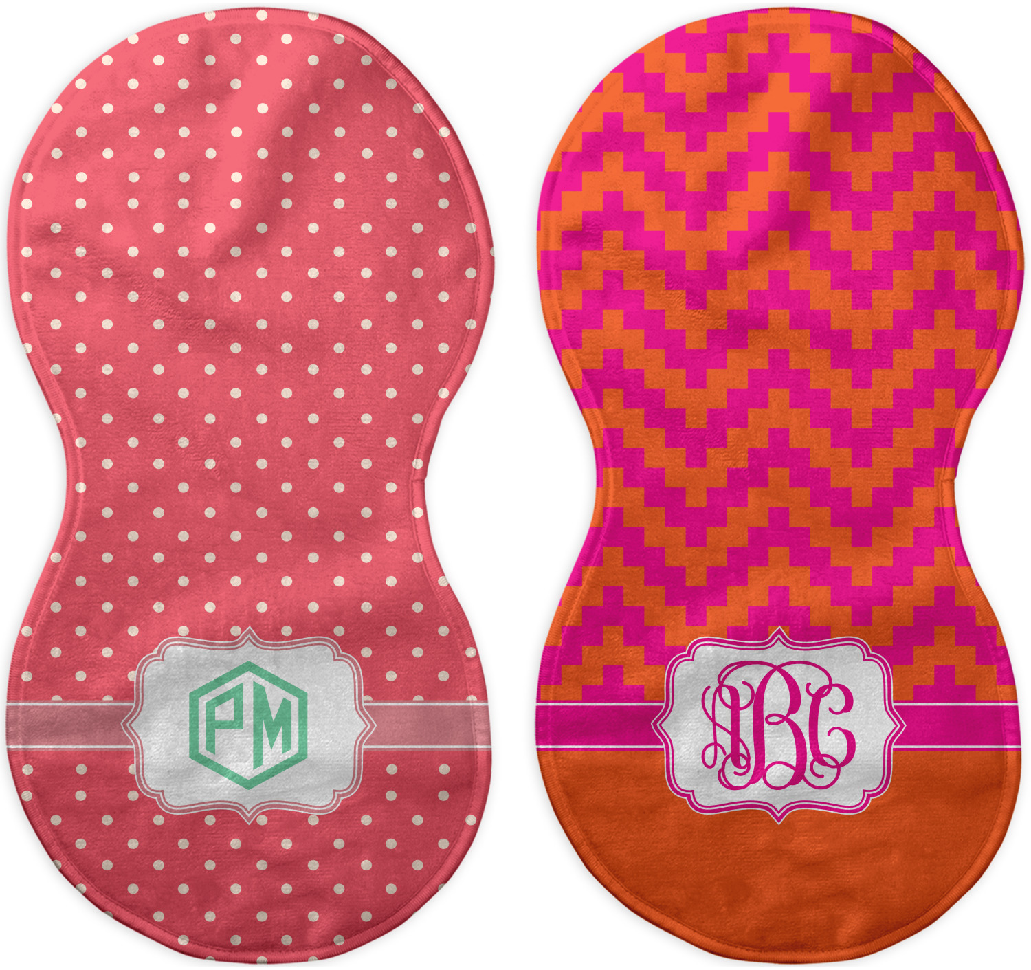 Choose your baby burp cloth from our two styles - Fleece (rectangular) or Microfiber Velour (peanut shape). The lightweight and absorbent design makes each burp cloth multipurpose; use them as a burp pad, a lap pad, a changing table, or a spare cloth to clean up any baby mess. Your customization is displayed across the front with baby-safe ink to ensure extra comfort with a white backing.