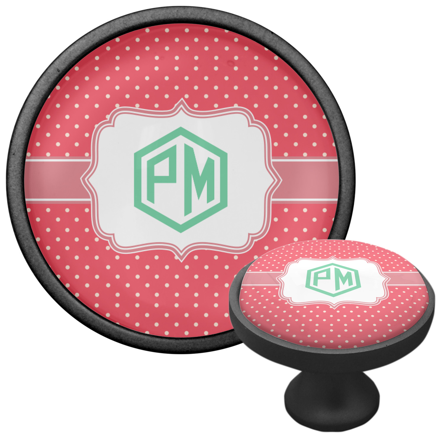 We sell these cabinet pulls in two different colors to better match your room's color scheme. We offer an oil-rubbed bronze base that is black in color, and a satin nickel option, which has a silver color. Your design is displayed across a high gloss vinyl insert that is placed on top of these cabinet handles. We then place a 1 inch thick glass cabochon atop the design, which seals the cabinet knob and makes the colors of your customization stand out. These custom cabinet knobs are approximately 1.3 inches in diameter. Your purchase includes a 1 inch screw that can be used to mount the knob to any cabinet in your home.