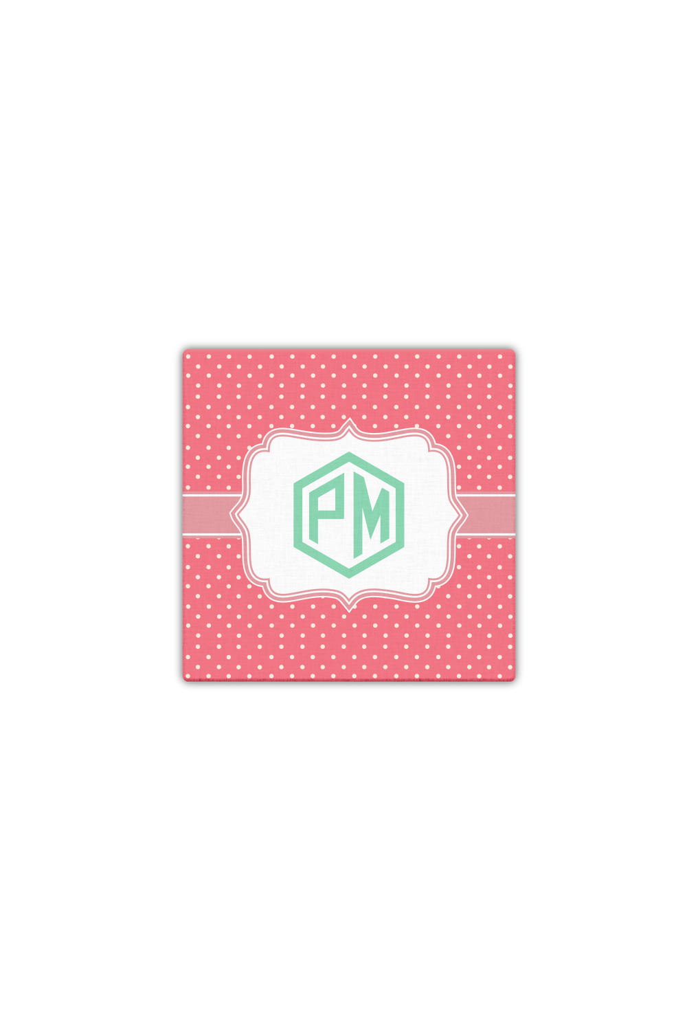 The pixelated chevron stripe pattern alternates between the hot pink and orange. The design has a classic ribbon in hot pink with white stripes. The decorative rectangular label is also in hot pink and white. The personalization is the gorgeous interlocking monogram in hot pink to pull the entire design together.