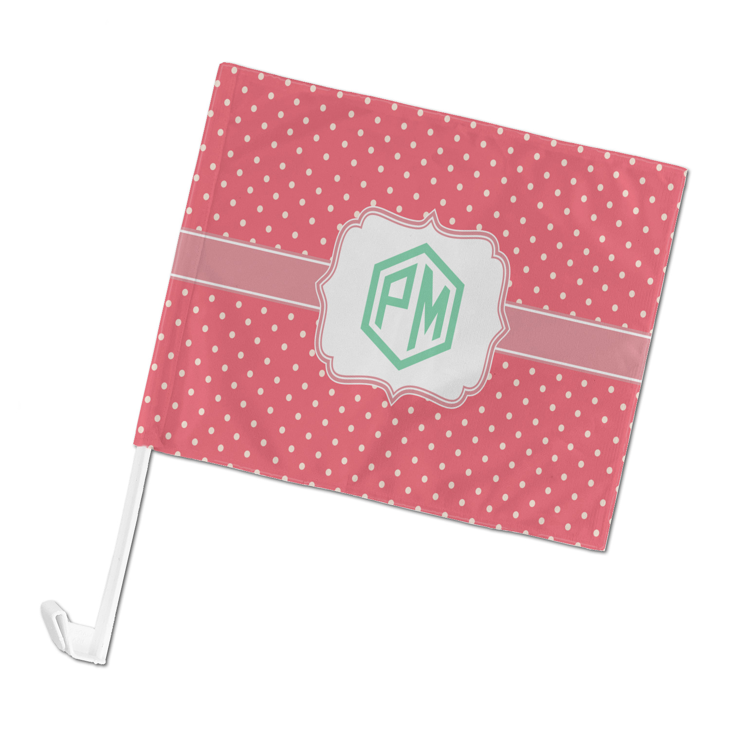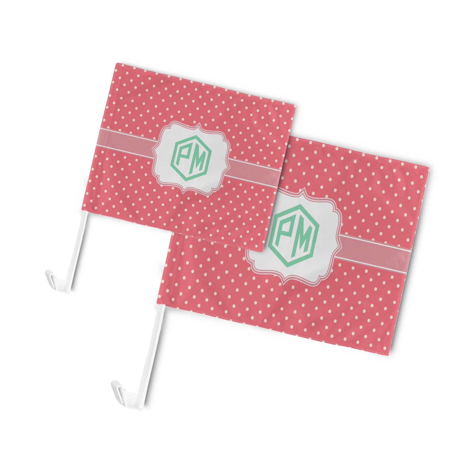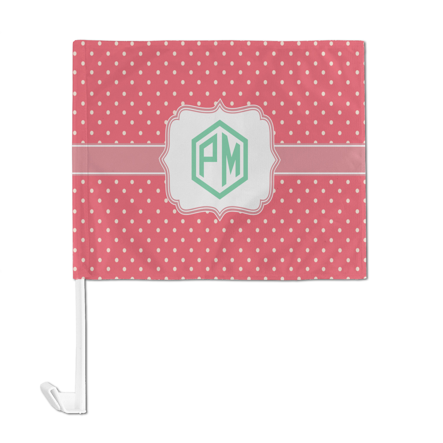 Our personalized flags are made from a durable, yet lightweight cloth that will proudly bear your logo or design of choice, while withstanding the outside elements. We have two size options - 8" x 11" and 11" x 15". Both come with a flag pole which includes a clip that secures the pole to the side window, whether it is rolled up or down. The flags are printed on both sides to display your design from all directions.