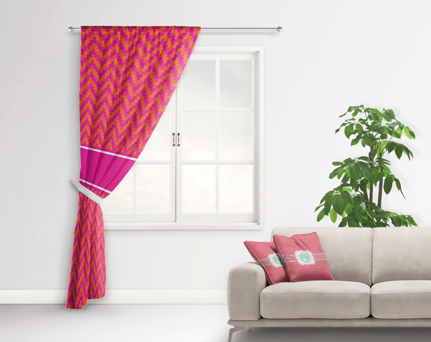 | SKU | mi-curtain+Pink-Orange-Chevron |