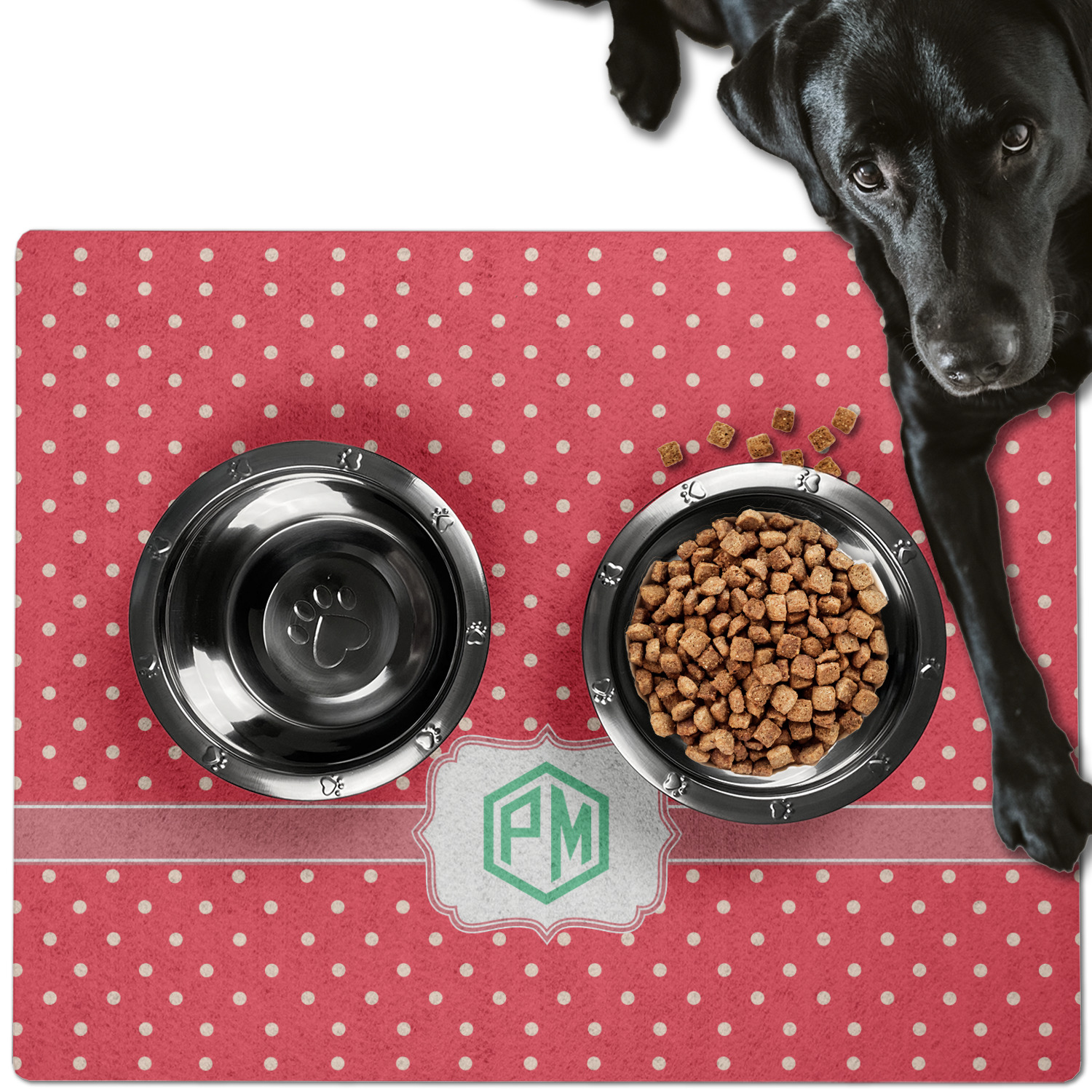 This dog bowl mat, fabricated from polyester, proudly displays your customized design on its top, while its bottom includes a non-slip rubber. This feature allows it to remain firmly in place, even when your dog spills his/her water. With 3 sizes available (18" x 12", 24" x 18", 30" x 24"), the pet food mat has ample space for both a food and water bowl for any sized dogs. Though specified for dogs' use, these mats are also a splendid option for cats.