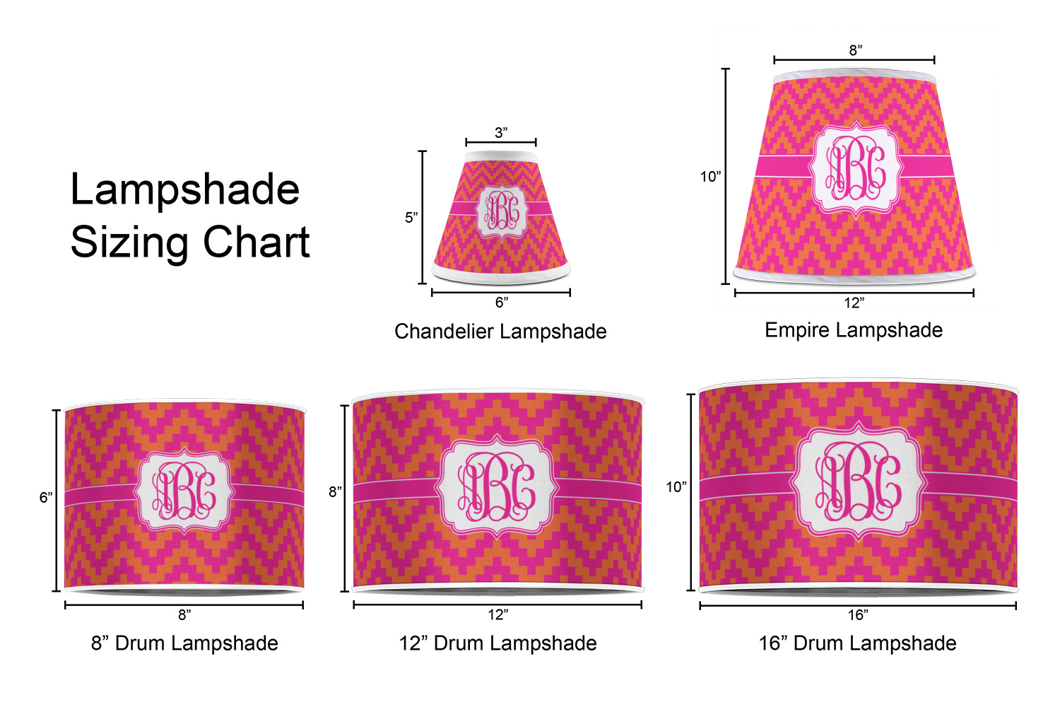 Our customized lamp shades also come in 3 different sizes: 8", 12" and 16", measuring at 8" in diameter by 6" tall, 12" in diameter by 8" tall, and 16" in diameter by 10" tall, respectively.