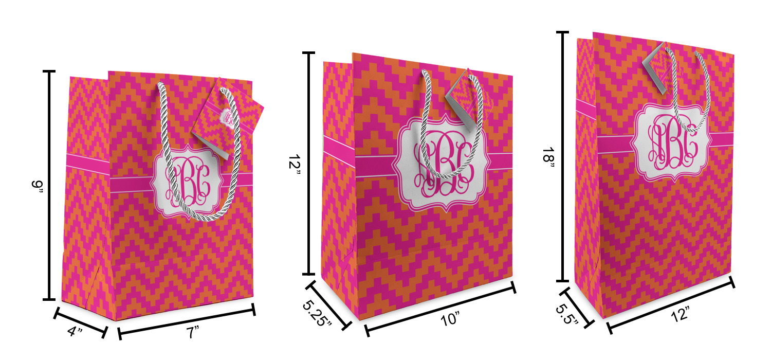 These custom gift bags come in your choice of 3 sizes. Their dimensions are below: