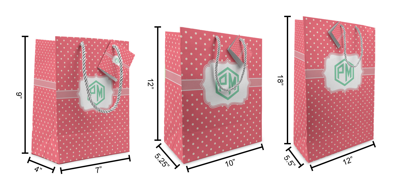 These custom gift bags come in your choice of 3 sizes. Their dimensions are below: