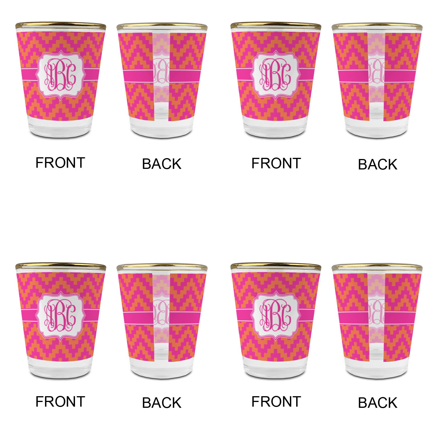 Made with frosted glass, these shot glasses are printed in full color with the design of your choice. They are a standard 1.5oz shot glass and are 2.4" tall. The print is wrapped around the shot glass in a full wrap and boldly displays your customization.