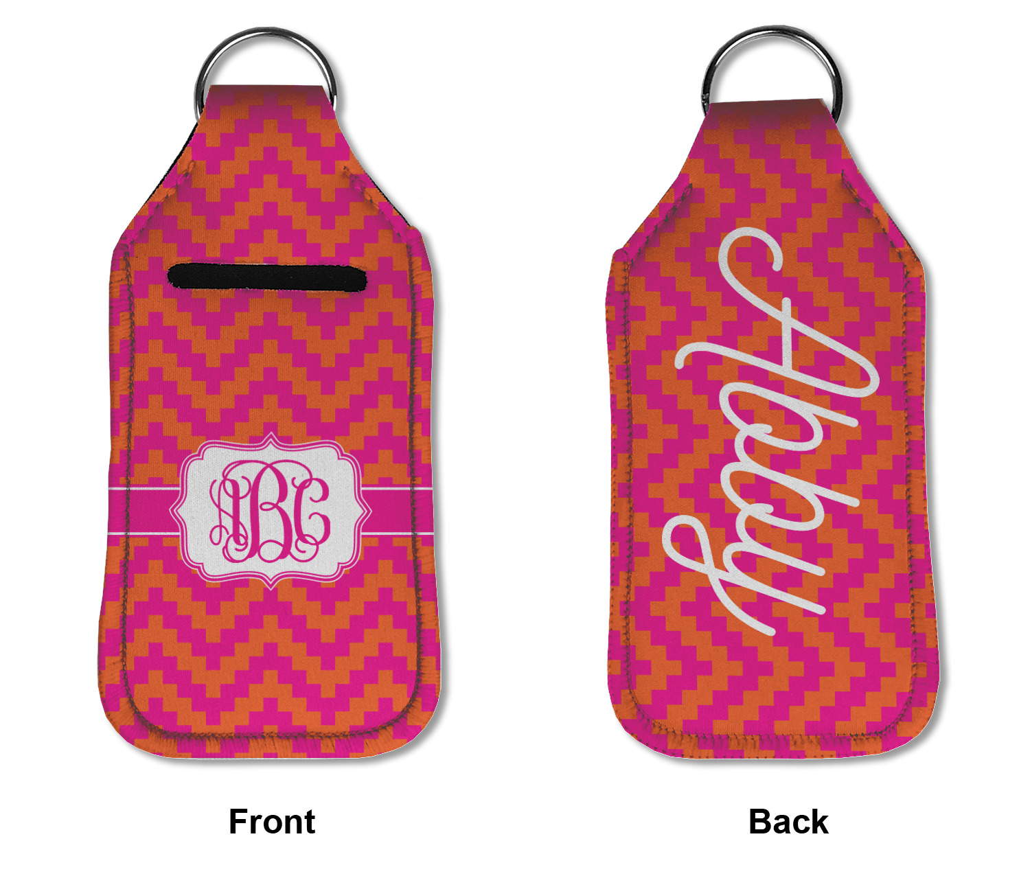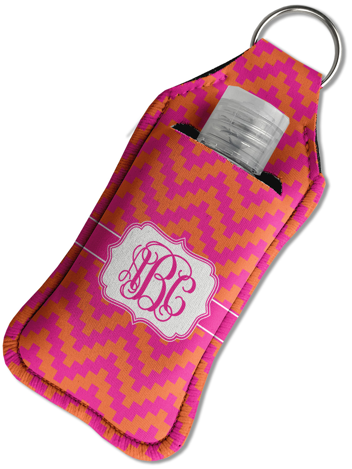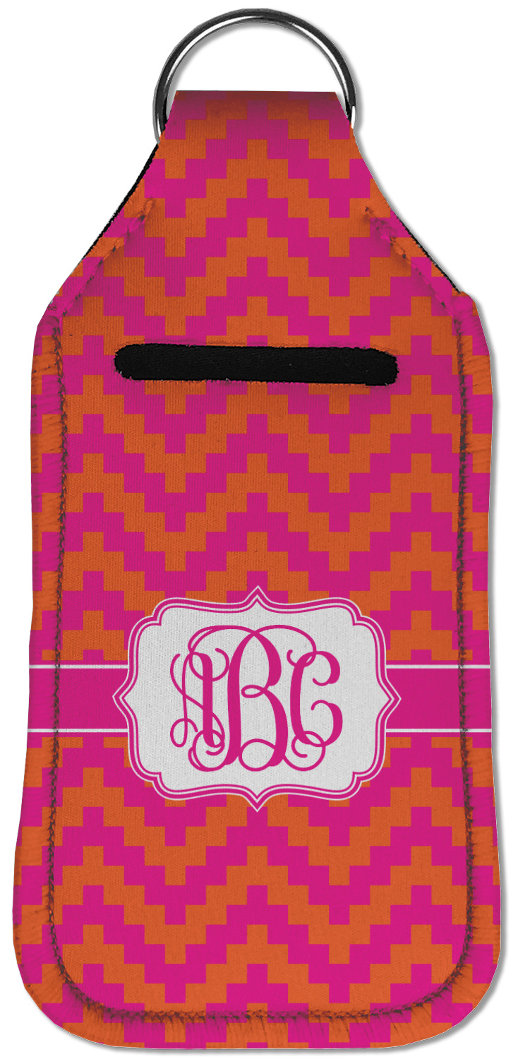 Each hand sanitizer holder comes with its own empty travel-sized, refillable hand sanitizer sure to fit snug in your customized sanitizer case! Our hand sanitizer cases are a durable, yet soft neoprene material sure to last any daily activities or travel agenda. Customize and personalize a hand sanitizer bottle holder with one of our two sizes - small (4.25" x 2.25") or large (5.5" x 2.5"). Each travel sanitizer holder comes with a keyring for attachment on bags, keys, or more!