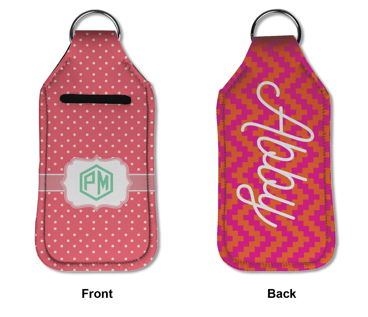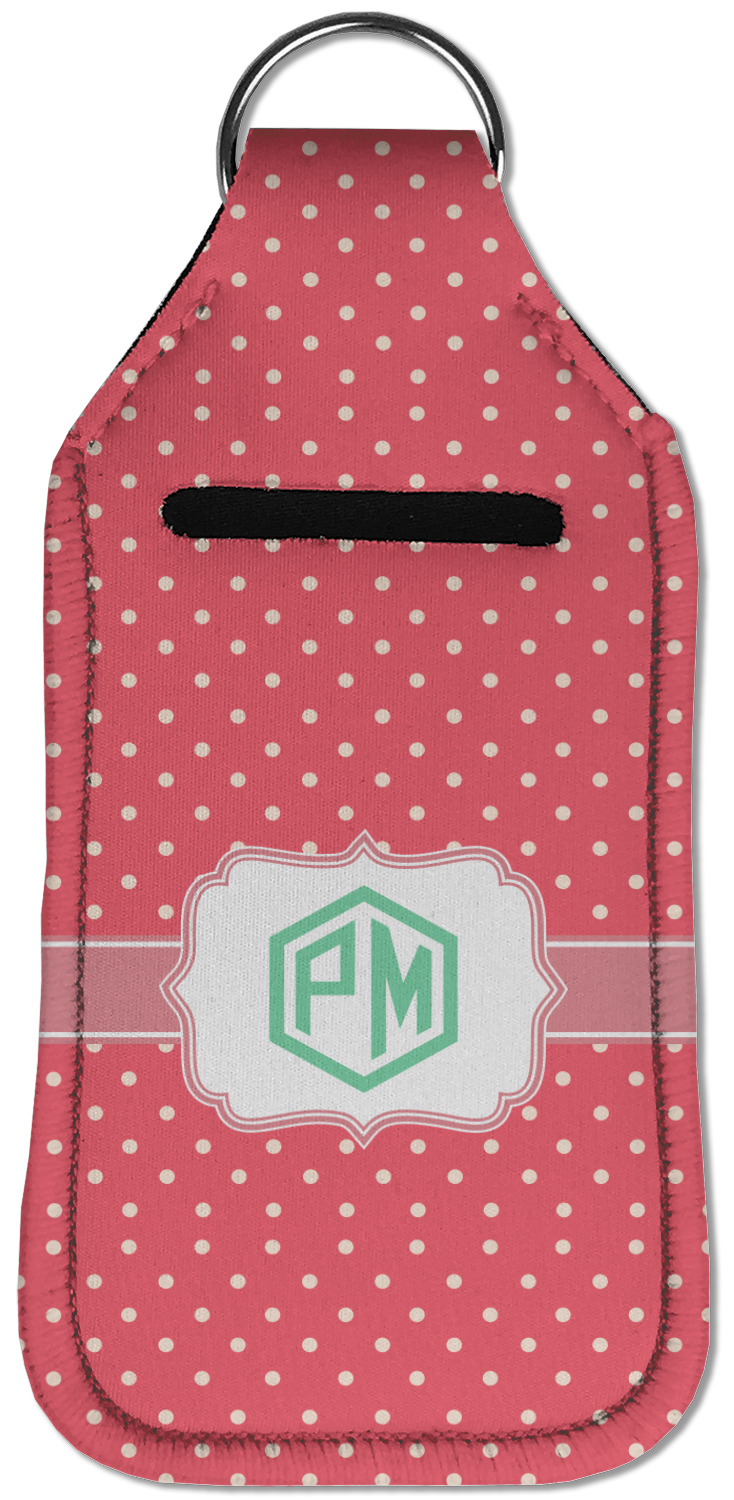 Each hand sanitizer holder comes with its own empty travel-sized, refillable hand sanitizer sure to fit snug in your customized sanitizer case! Our hand sanitizer cases are a durable, yet soft neoprene material sure to last any daily activities or travel agenda. Customize and personalize a hand sanitizer bottle holder with one of our two sizes - small (4.25" x 2.25") or large (5.5" x 2.5"). Each travel sanitizer holder comes with a keyring for attachment on bags, keys, or more!