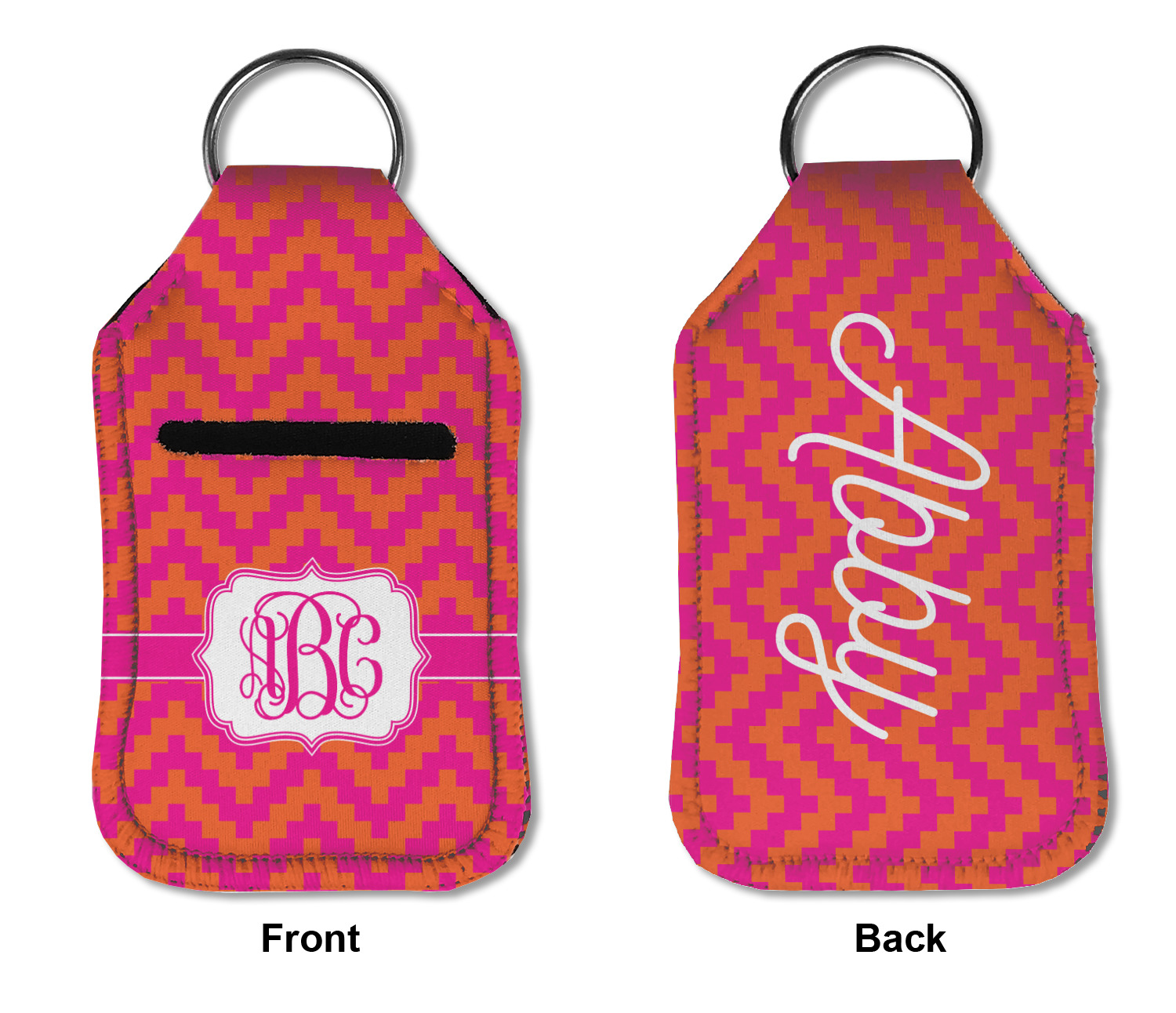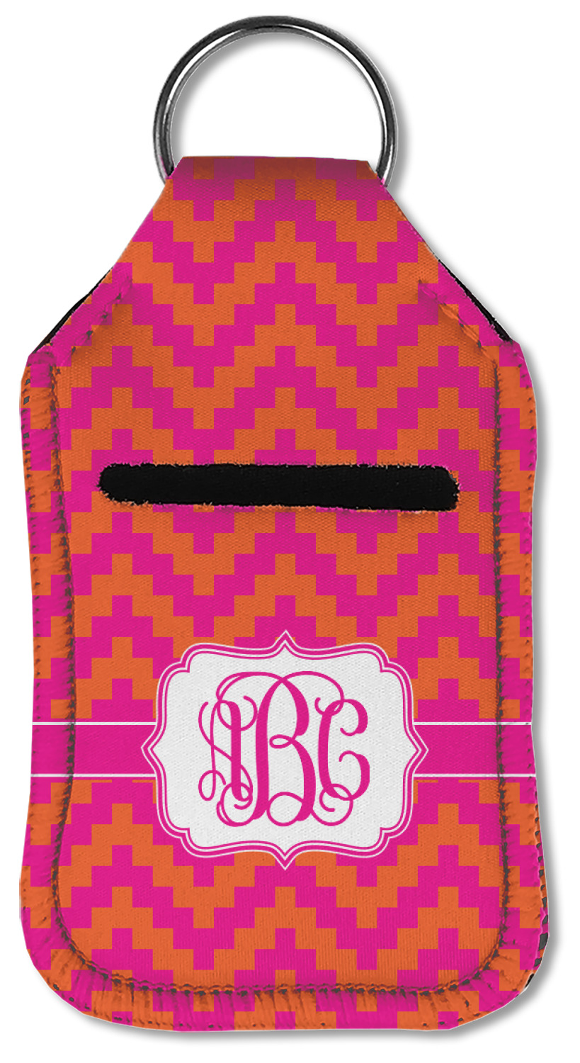 Each hand sanitizer holder comes with its own empty travel-sized, refillable hand sanitizer sure to fit snug in your customized sanitizer case! Our hand sanitizer cases are a durable, yet soft neoprene material sure to last any daily activities or travel agenda. Customize and personalize a hand sanitizer bottle holder with one of our two sizes - small (4.25" x 2.25") or large (5.5" x 2.5"). Each travel sanitizer holder comes with a keyring for attachment on bags, keys, or more!