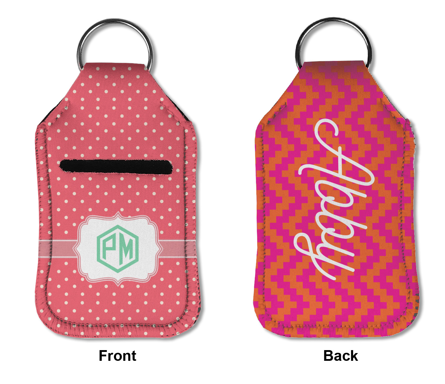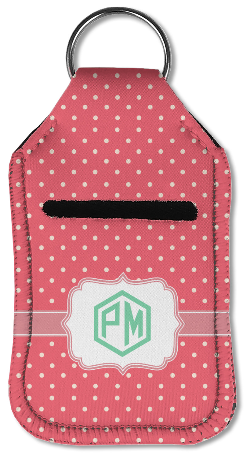 Each hand sanitizer holder comes with its own empty travel-sized, refillable hand sanitizer sure to fit snug in your customized sanitizer case! Our hand sanitizer cases are a durable, yet soft neoprene material sure to last any daily activities or travel agenda. Customize and personalize a hand sanitizer bottle holder with one of our two sizes - small (4.25" x 2.25") or large (5.5" x 2.5"). Each travel sanitizer holder comes with a keyring for attachment on bags, keys, or more!