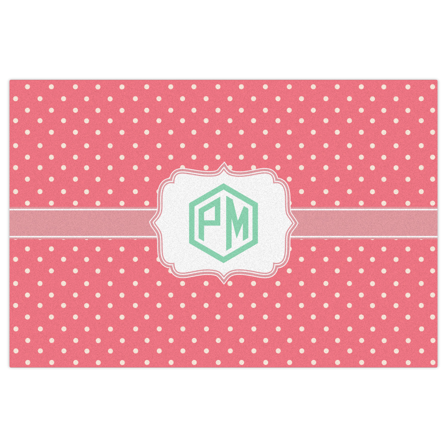The pixelated chevron stripe pattern alternates between the hot pink and orange. The design has a classic ribbon in hot pink with white stripes. The decorative rectangular label is also in hot pink and white. The personalization is the gorgeous interlocking monogram in hot pink to pull the entire design together.