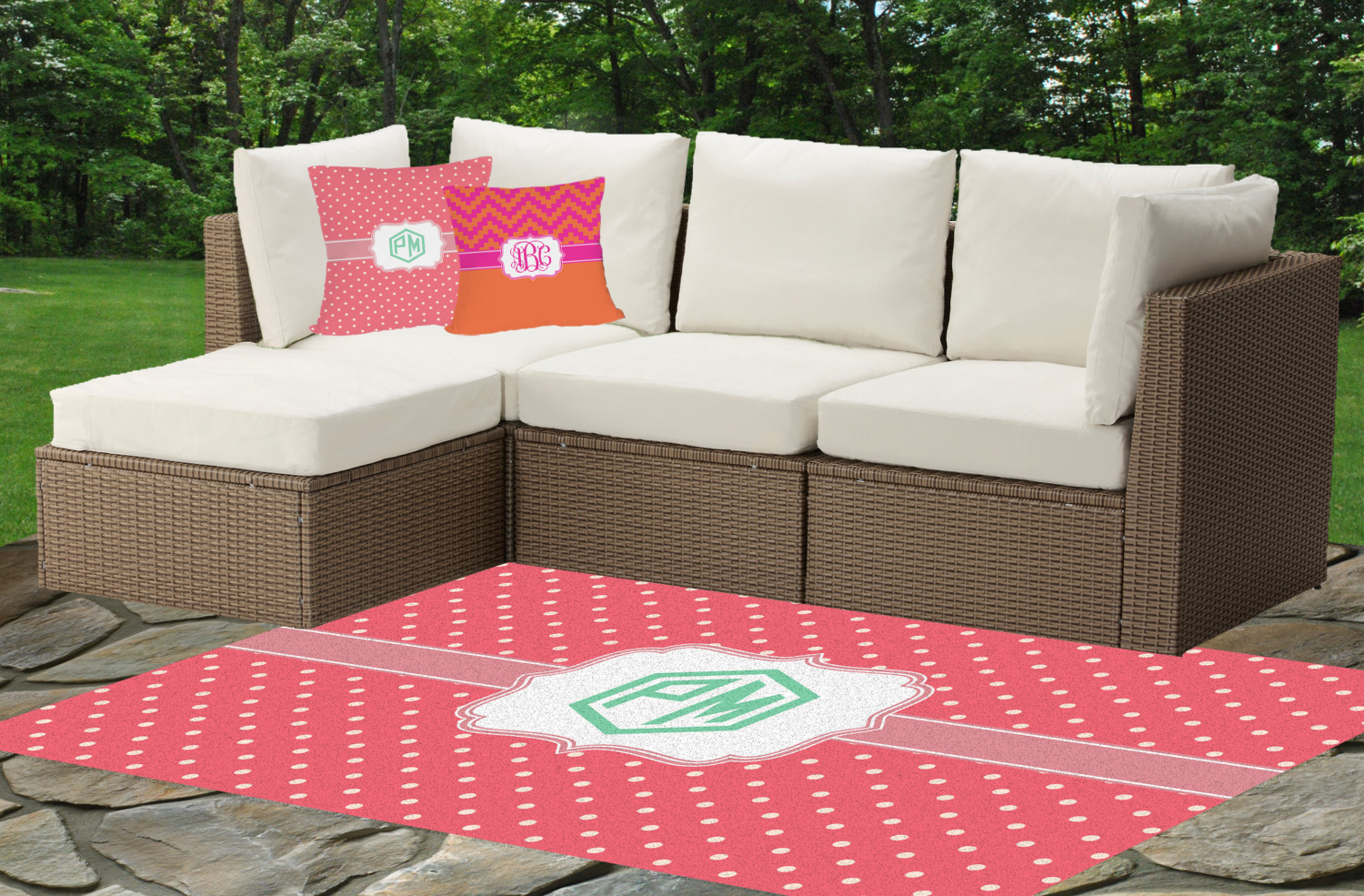 Our rugs are available to you in multiple sizes and we can also do a custom size / design just for you (contact us for custom sizing). Our custom indoor / outdoor rugs are available in multiple patterns and prints and many of the patterns are available in 45 different colors - so you should be able to find something to suit your needs. If you are unable to find what you are looking for or need a custom solution, contact us and we will try our best to meet your needs.