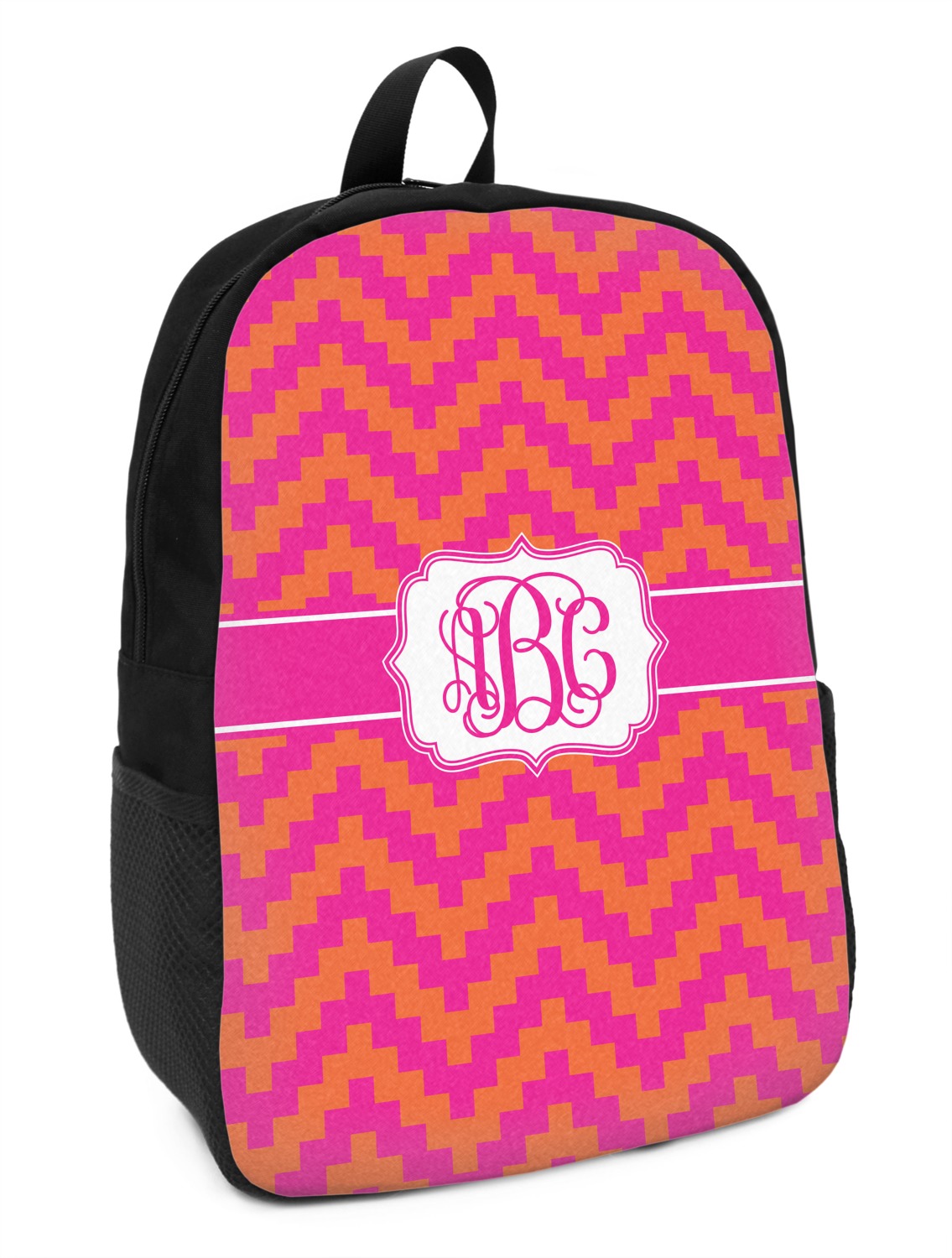 Looking for that unique and chic item in colors that pop? Well, look no further because you found it! This super chic pixelated chevron print design is done in the popular hot pink and orange color combination.