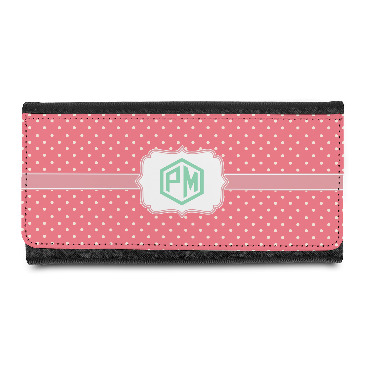 These leatherette ladies wallets can be customized with any one of our patterns (many patterns are available in multiple colors). Of course adding personalization (free) is your choice - you can include a monogram (interlocking is my favorite), a name, or one of our beautiful name and initial combinations.