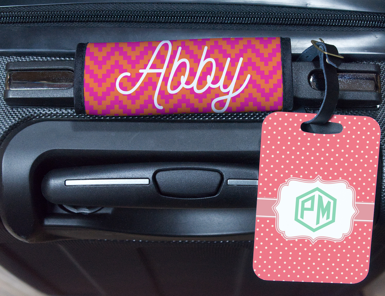 | SKU | mi-rect-luggage-tag-alum+Pink-Orange-Chevron |