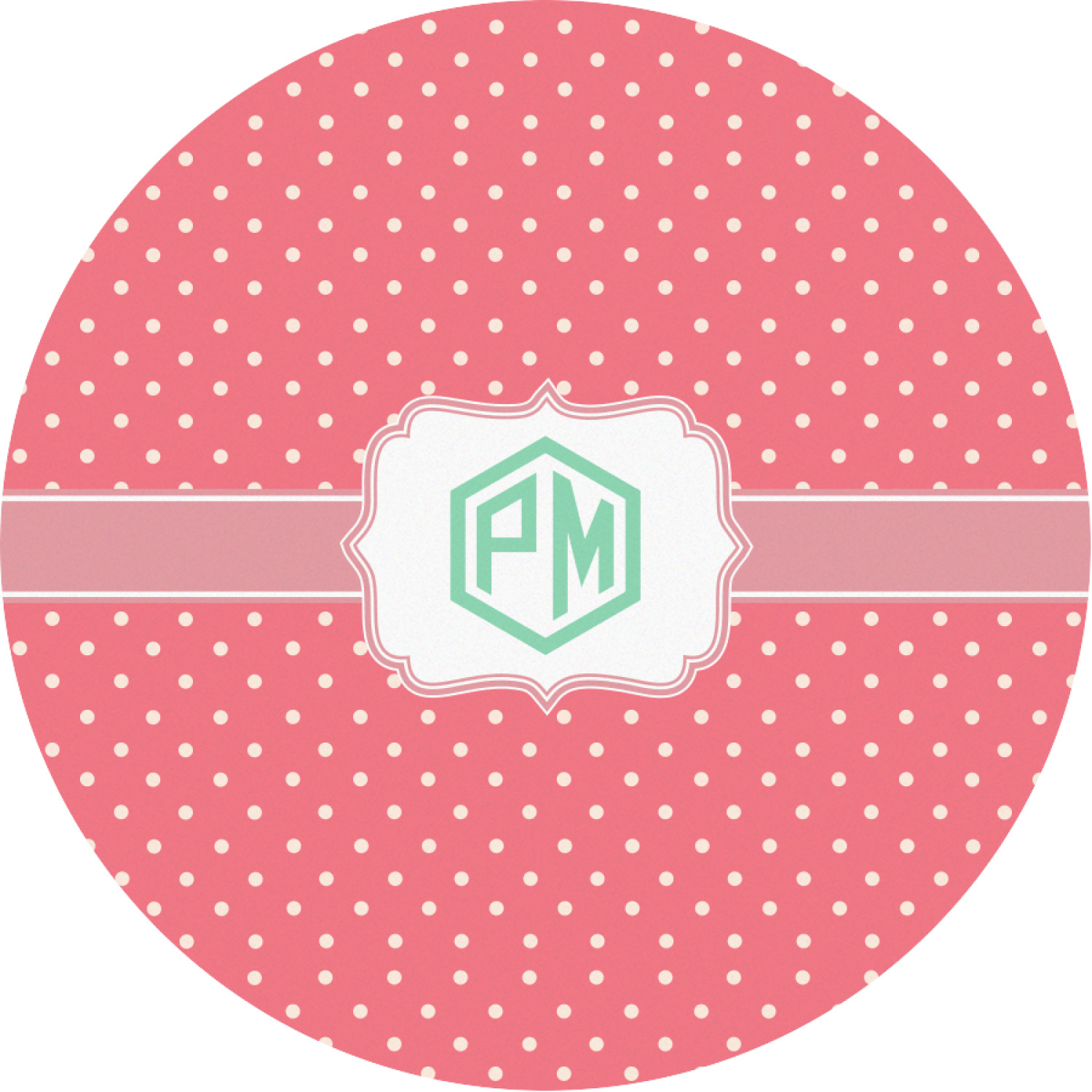 The pixelated chevron stripe pattern alternates between the hot pink and orange. The design has a classic ribbon in hot pink with white stripes. The decorative rectangular label is also in hot pink and white. The personalization is the gorgeous interlocking monogram in hot pink to pull the entire design together.