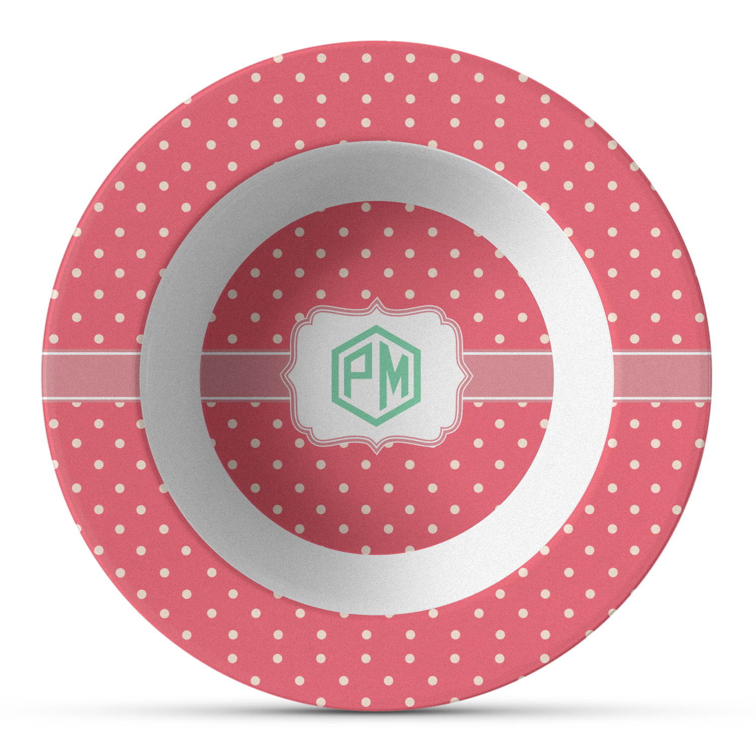 Made from a composite, thermo-set, polymer plastic, these dinner bowls have the versatility, durability, and weight of a melamine bowl without any of the downsides of melamine. Unlike melamine dinnerware, these bowls can withstand high heat. These custom plastic bowls can even handle temperatures of up to 250 degrees Fahrenheit, for up to 60 minutes. The pieces of our plastic dinner set are never made with harmful chemicals, such as BPAs, formaldehyde, DEHPs. We display your personalization on the base of this bowl's interior (4.5" diameter) and the rim. The bowl itself has an 8.5" diameter and is 1.5" tall.