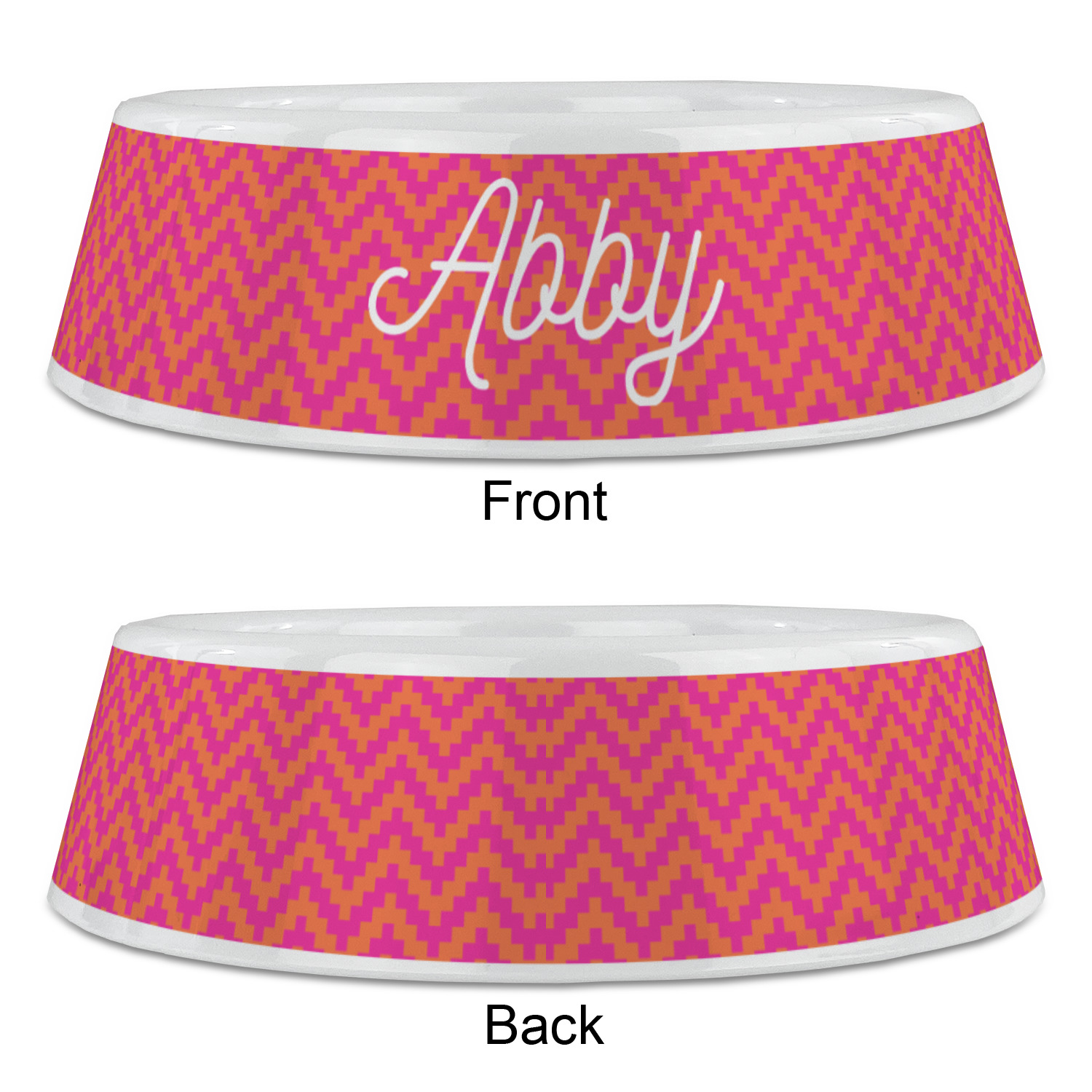 This Customizable Product What is a designed product?Pink & Orange Chevron Plastic Dog Bowl - Large (Personalized)