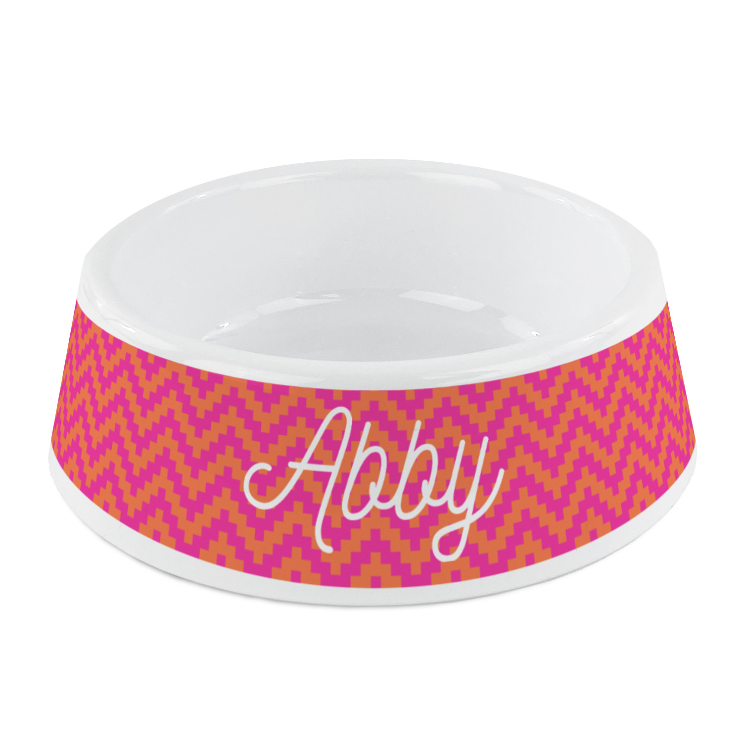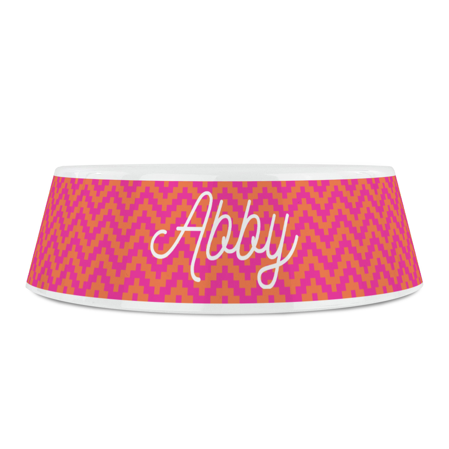 This Customizable Product What is a designed product?Pink & Orange Chevron Plastic Dog Bowl - Small (Personalized)