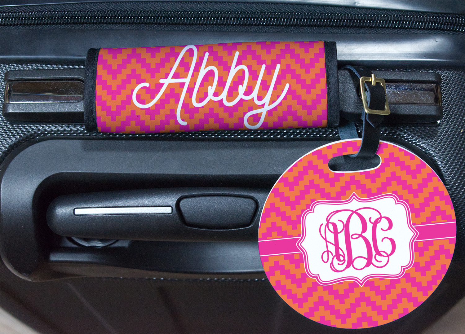 | SKU | mi-round-luggage-tag+Pink-Orange-Chevron |