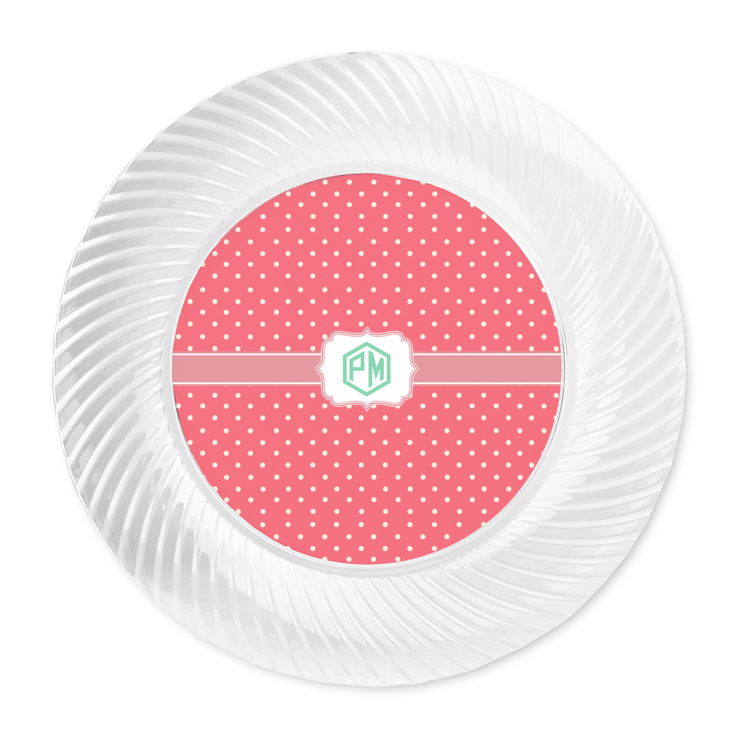 Made from a beautiful clear plastic plate as a base, your design is printed to the underside of the plate. The outside of these disposable plates has a classic swirl texture to it for a high quality look and feel.