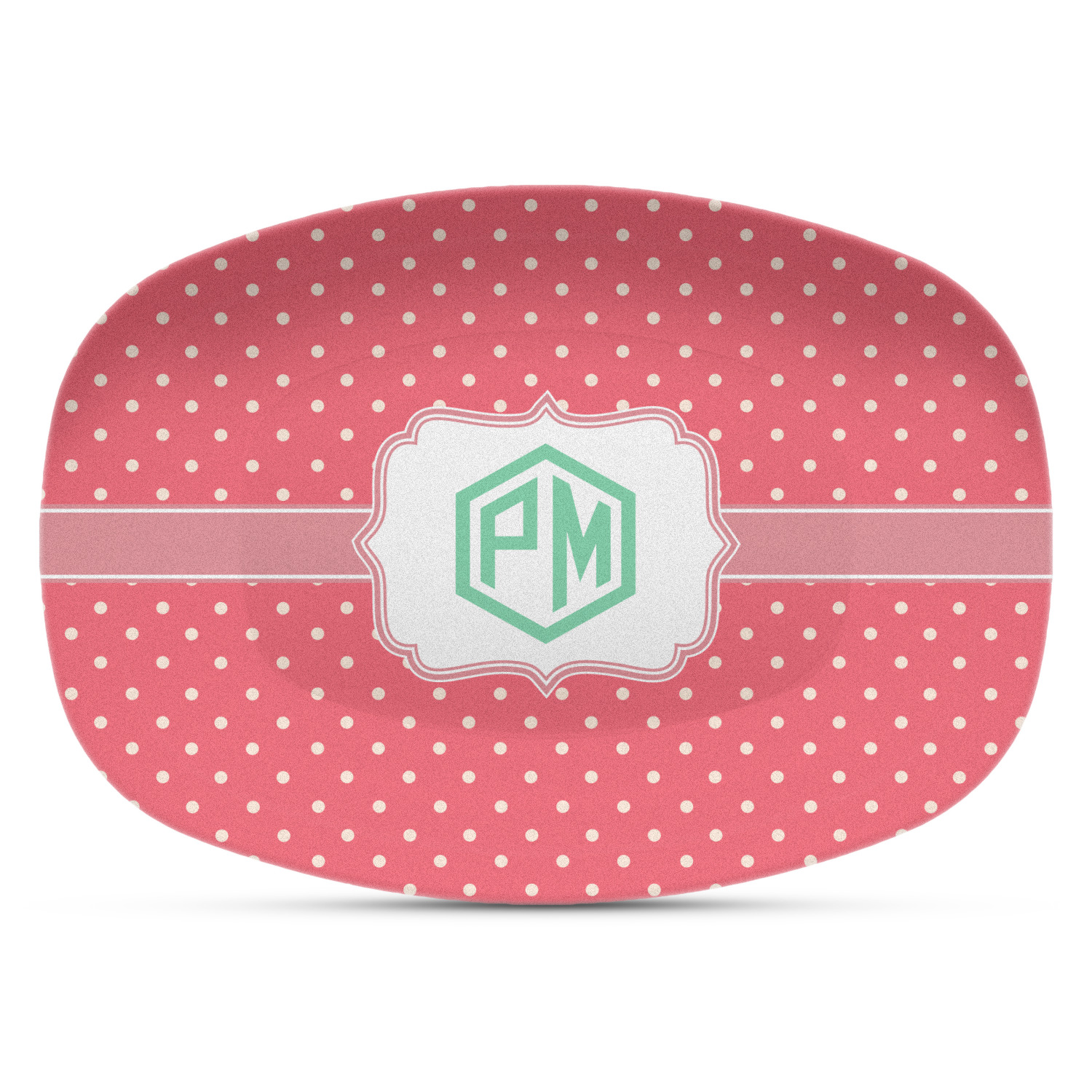 These serving platters are made from a composite, thermo-set, polymer plastic that gives it the versatility, durability, and weight of a melamine platter, without any of the downsides of melamine. These personalized platters, can withstand temperatures up to 250 degrees Fahrenheit, for up to 60 minutes. No harmful chemicals, such as BPA, formaldehyde, and DEHPs were used in the manufacturing of this product. This large serving platter measures at 14" x 10.25", and is spacious enough to hold any of your appetizers or bite-sized desserts. The platter exhibits your personalization across the entirety of its front.