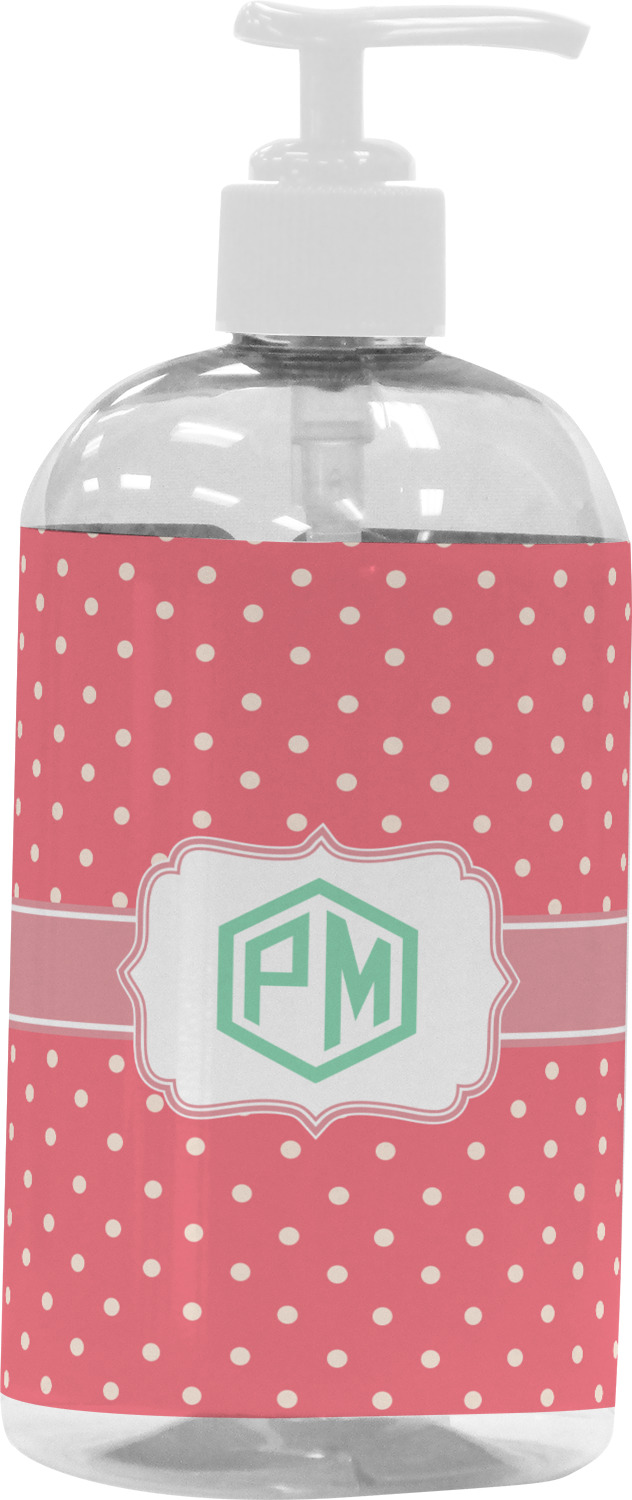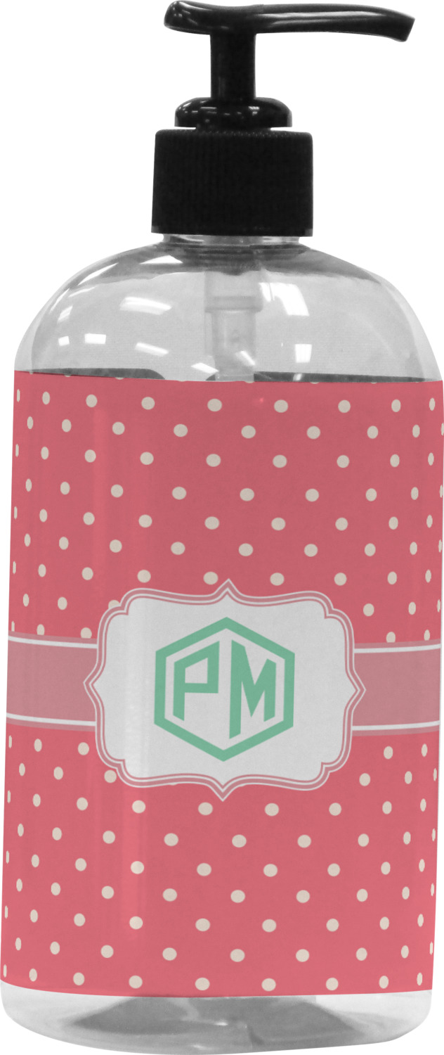 Our bottle dispensers are clear plastic with a black or white nozzle and are available in two sizes - 8 oz (2.25"D x 6"H) and 16 oz (2.5"D x 7"H) and can hold a variety of liquids. The large size (16 oz) is perfect for shampoo, conditioner, body soap / lotion while the smaller size (8 oz) is perfect for hand soap, lotion or face cleanser.