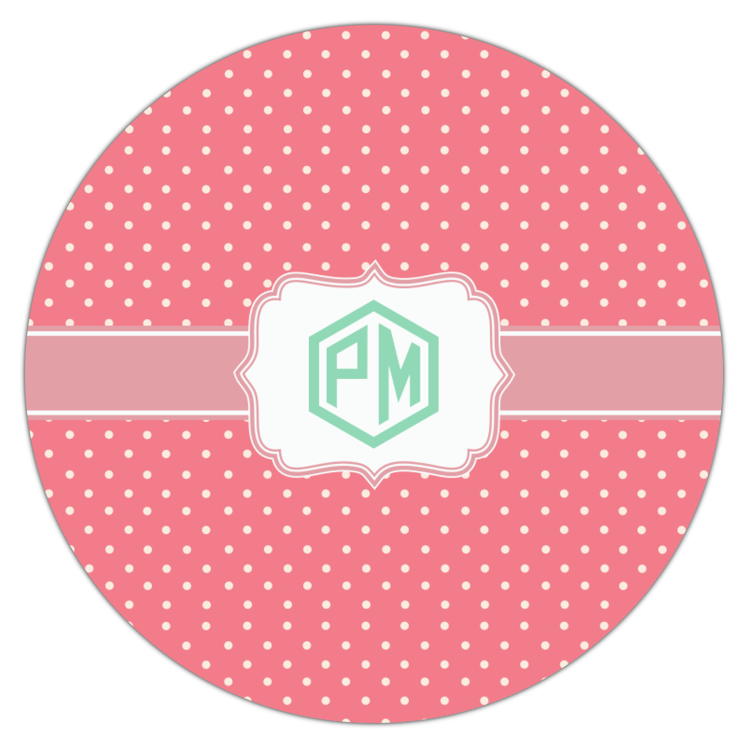 The pixelated chevron stripe pattern alternates between the hot pink and orange. The design has a classic ribbon in hot pink with white stripes. The decorative rectangular label is also in hot pink and white. The personalization is the gorgeous interlocking monogram in hot pink to pull the entire design together.