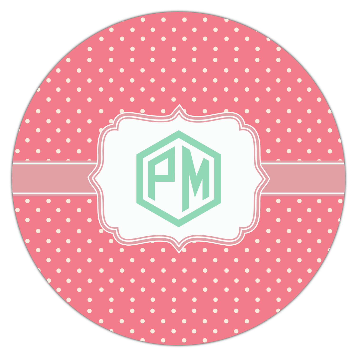 The pixelated chevron stripe pattern alternates between the hot pink and orange. The design has a classic ribbon in hot pink with white stripes. The decorative rectangular label is also in hot pink and white. The personalization is the gorgeous interlocking monogram in hot pink to pull the entire design together.