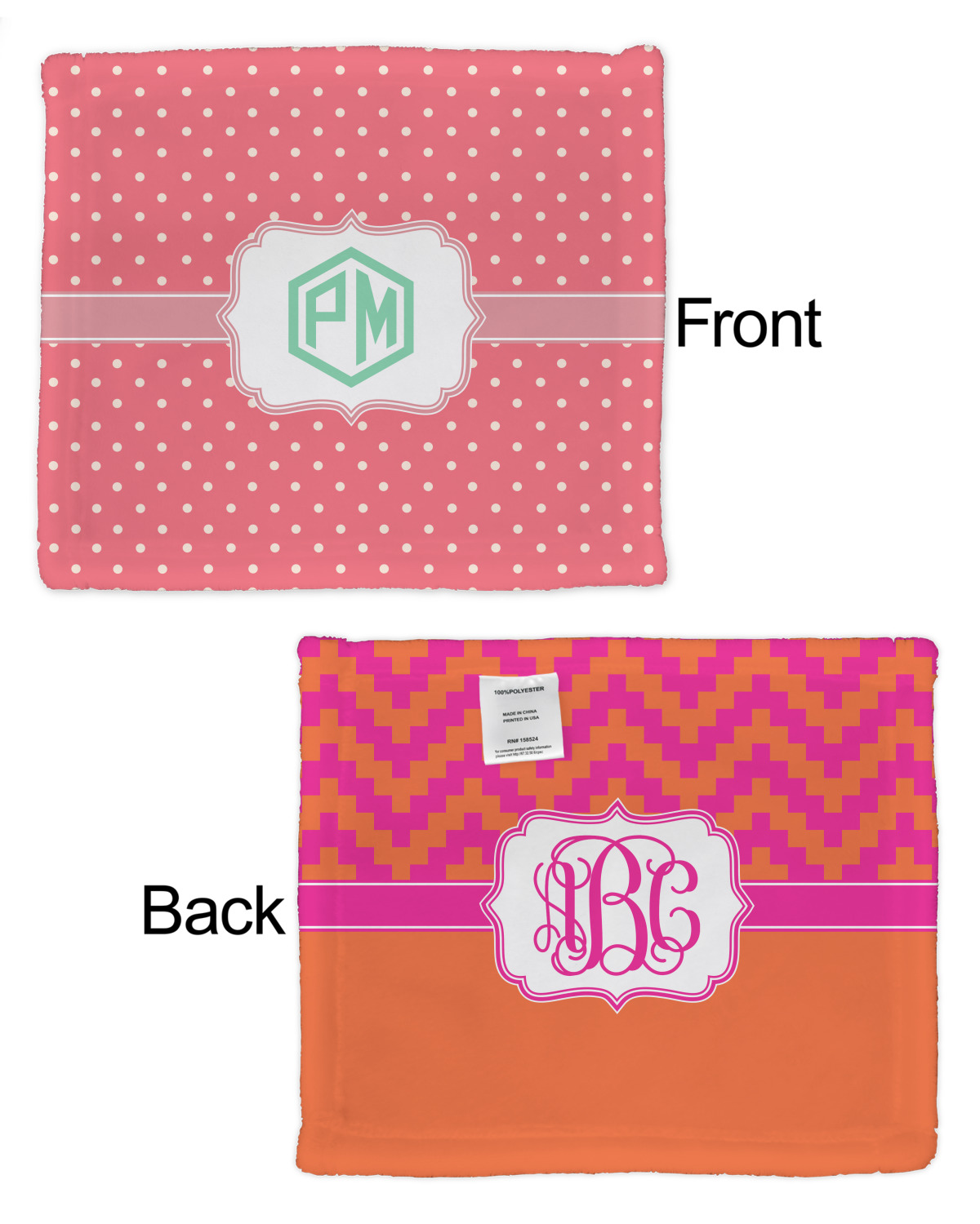 Our customized security AKA lovey blankets are available in 2 print styles - single sided or double sided. You can customize both the front and the back of the lovey security blankets. You have the option to choose different designs or the same design - the choice is yours.